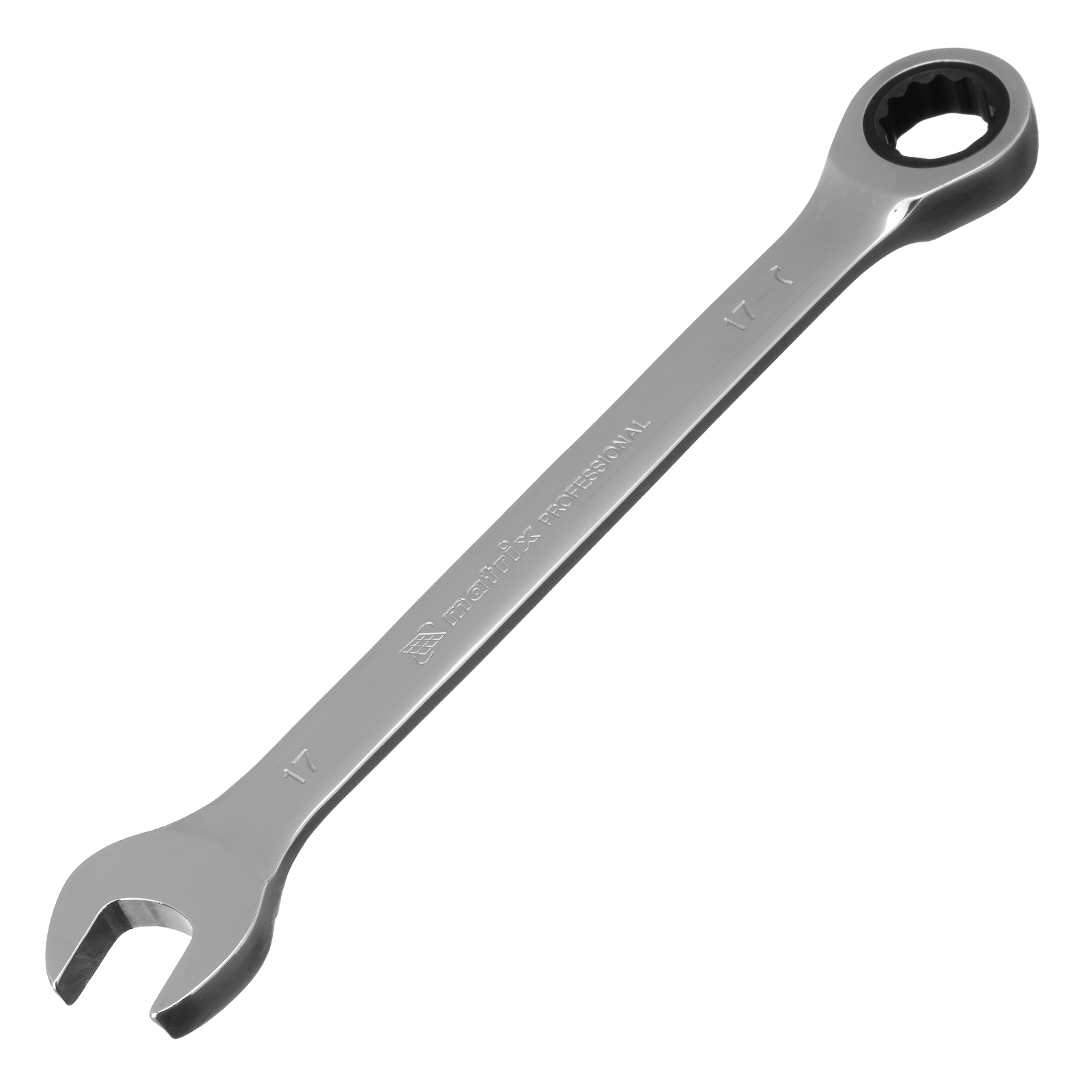 Ключ комбинированный трещоточный, 17 мм, CrV, зеркальный хром Matrix Professional