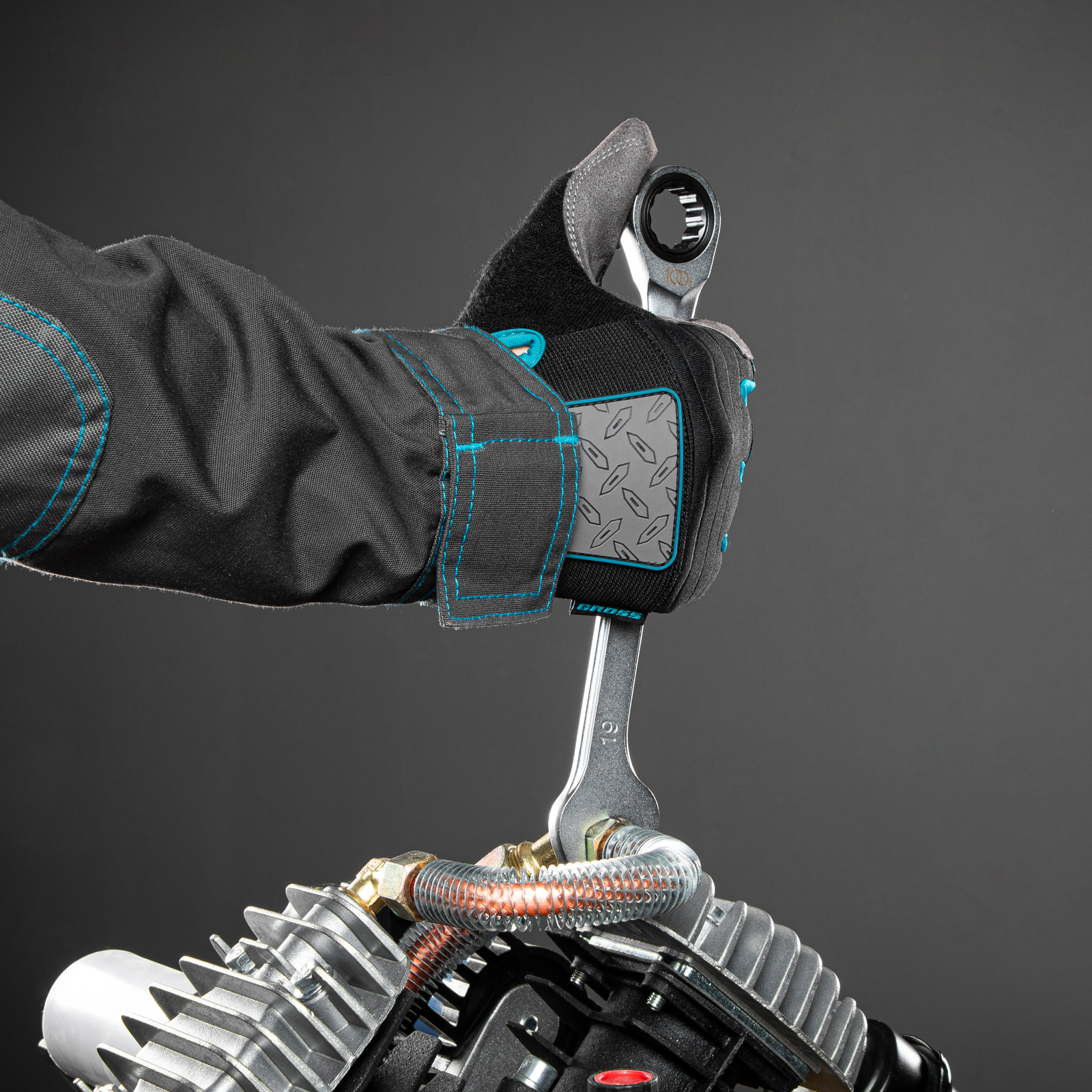 - Благодаря матовому покрытию ключ не выскальзывает из рук, даже если они в масле.
