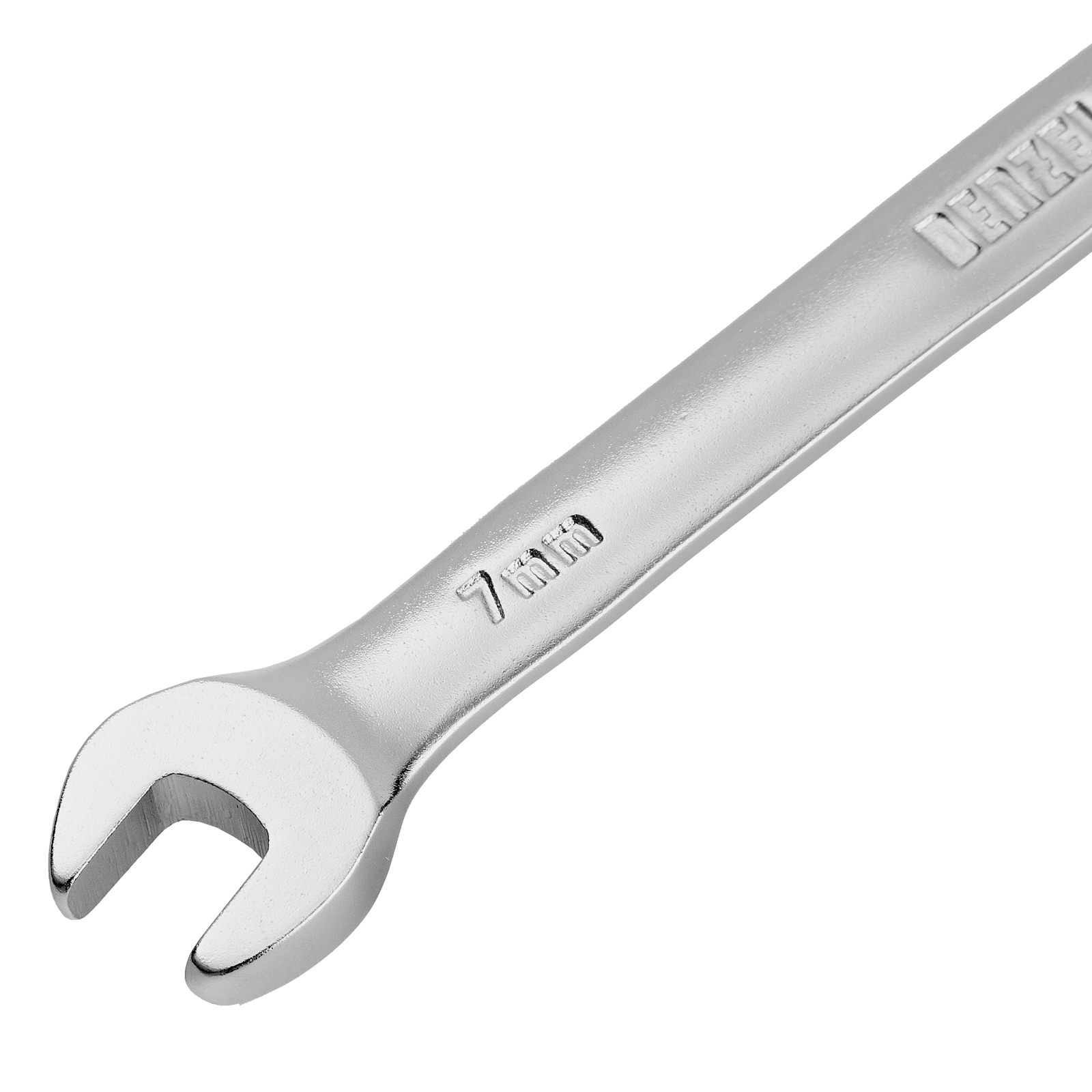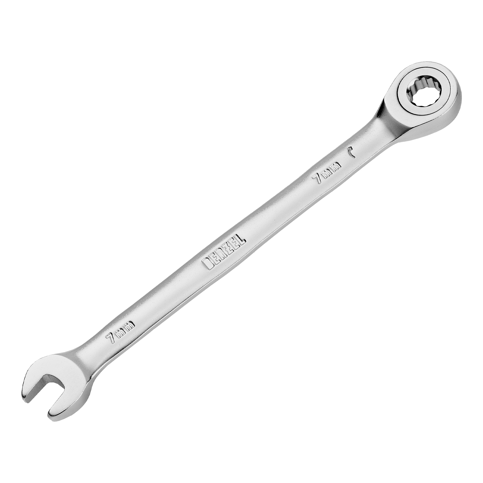 Ключ комбинированный трещоточный, 7 мм, CrV, матовый хром Denzel