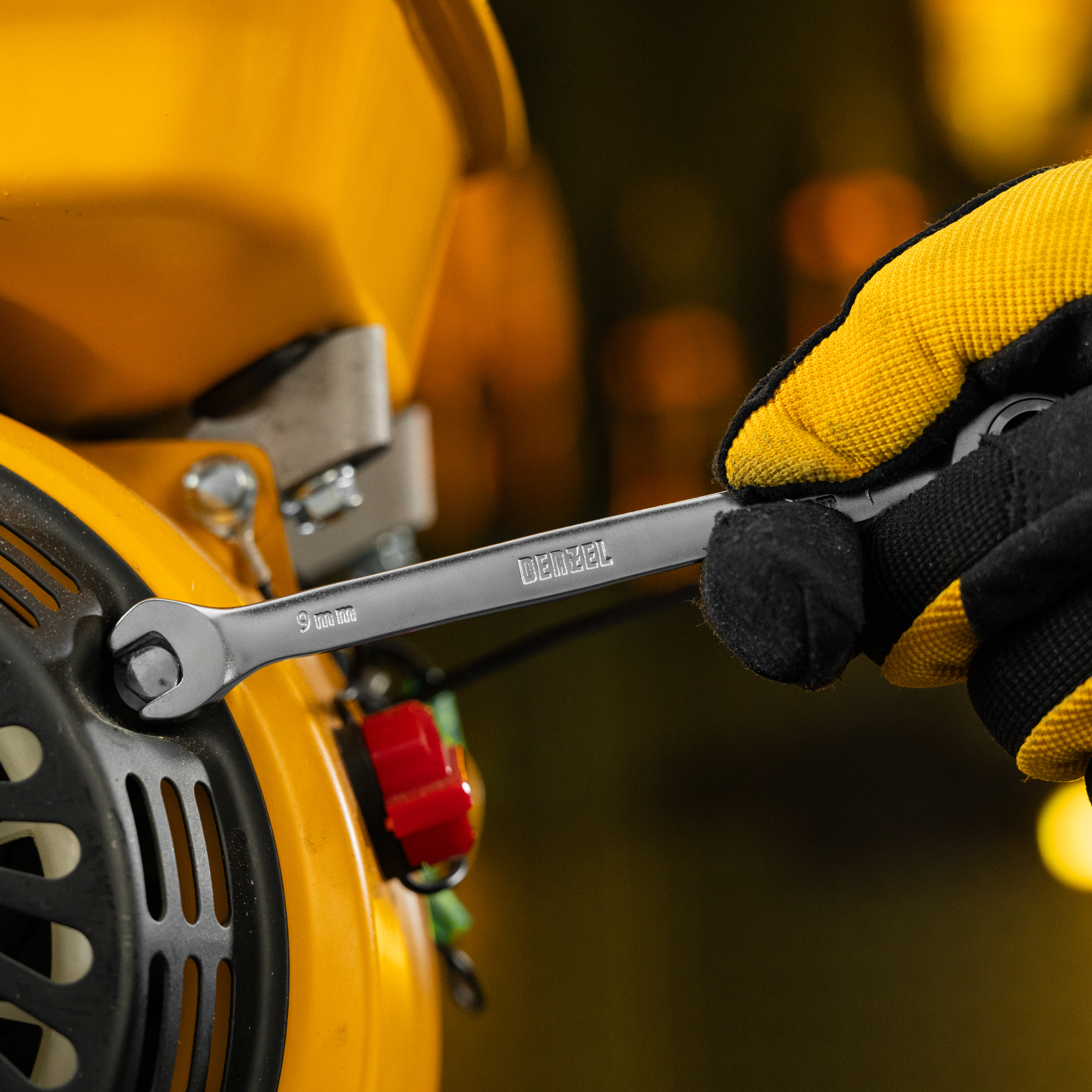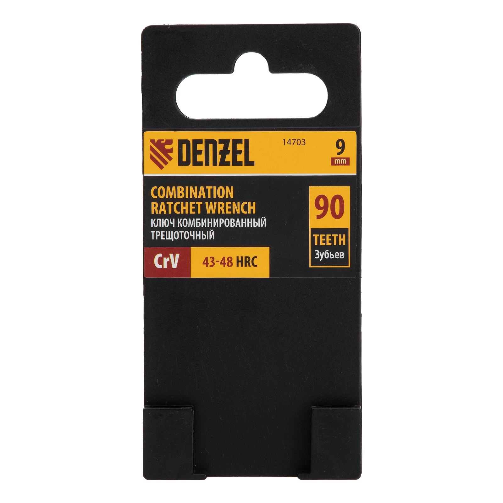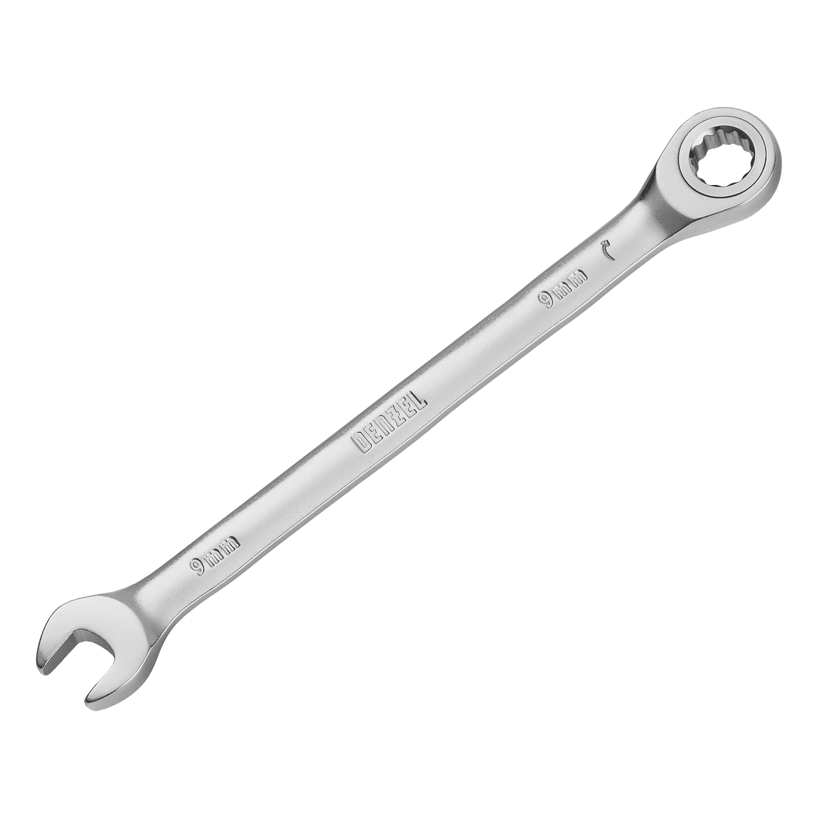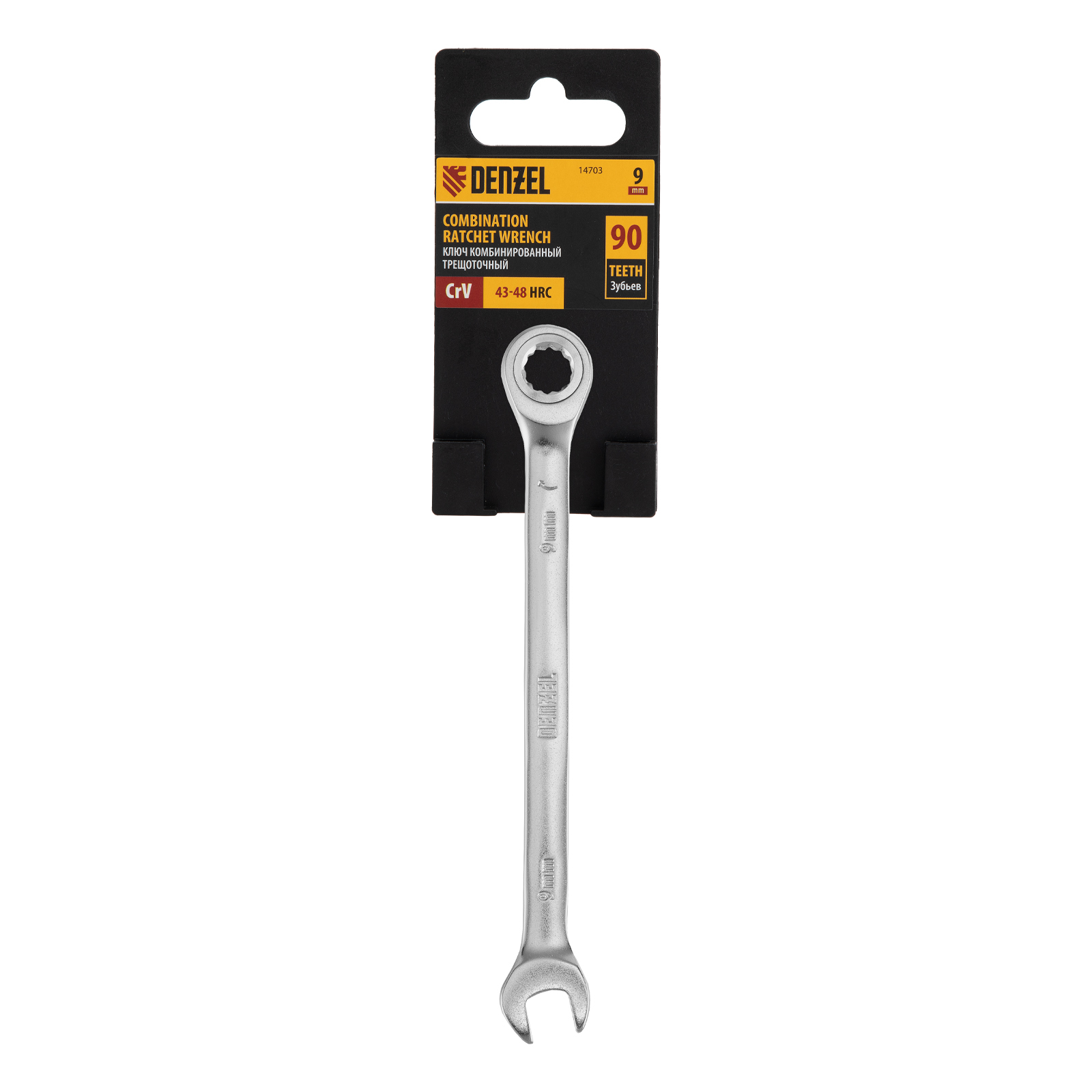 Ключ комбинированный трещоточный, 9 мм, CrV, матовый хром Denzel