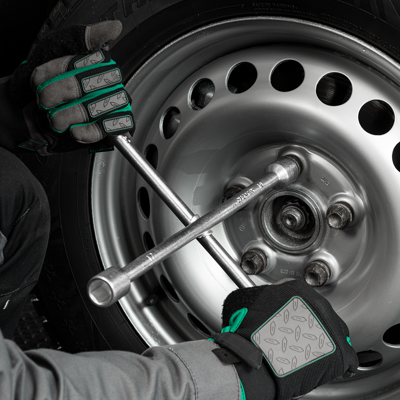 <p>Баллонный ключ-крест Сибртех 14257 с толщиной прутьев 14 мм и размерами головок 17, 19, 21 и 22 мм используется для снятия и монтажа автомобильных колес. 4 несъемные шестигранные торцевые головки подходят для колесных гаек и болтов наиболее распространенных размеров. Инструмент будет полезен работникам станций шиномонтажа и автосервисов, а также пригодится автовладельцам.</p><h2>Преимущества</h2><ul><li>Устойчивость к высоким нагрузкам — прутья толщиной 14 мм сварены под прямым углом.</li><li>Прочность и высокий ресурс — ключ изготовлен из углеродистой стали 40, твердость рабочих частей составляет 41 HRC.</li><li>Антикоррозионная защита — поверхность инструмента хромирована.</li></ul>