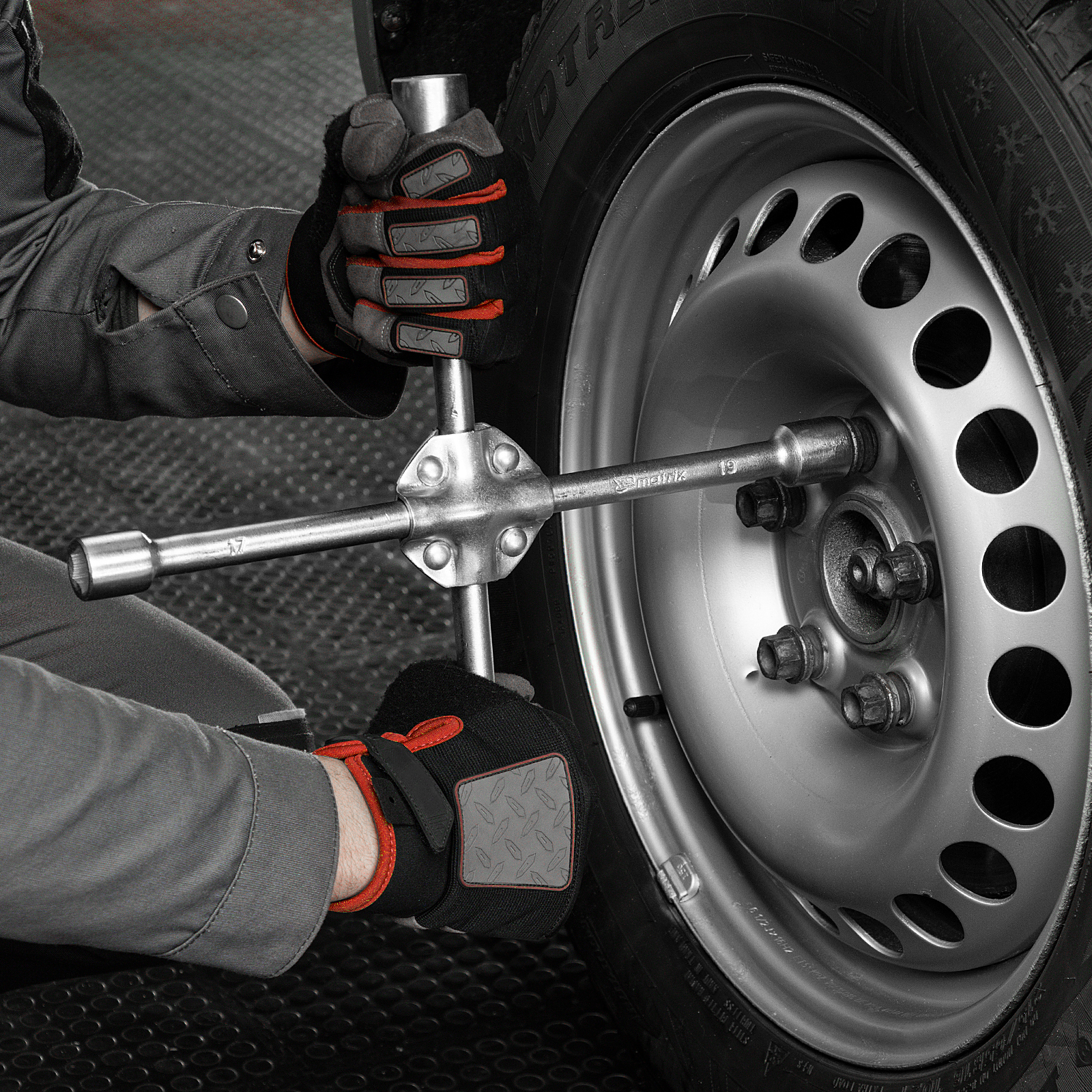 Ключ-крест баллонный усиленный Matrix 14244 размером 17 х 19 х 21 х 22 мм, с прутками толщиной 16 мм, применяется при установке и снятии автомобильных колес. Универсальный инструмент подходит для крепежа распространенных размеров 17, 19, 21 и 22 мм. Равномерно воздействует на крепежные изделия, не повреждая их. Используется на станциях техобслуживания и шиномонтажа, пригодится для самостоятельного ремонта машины или замены колеса в поездке.