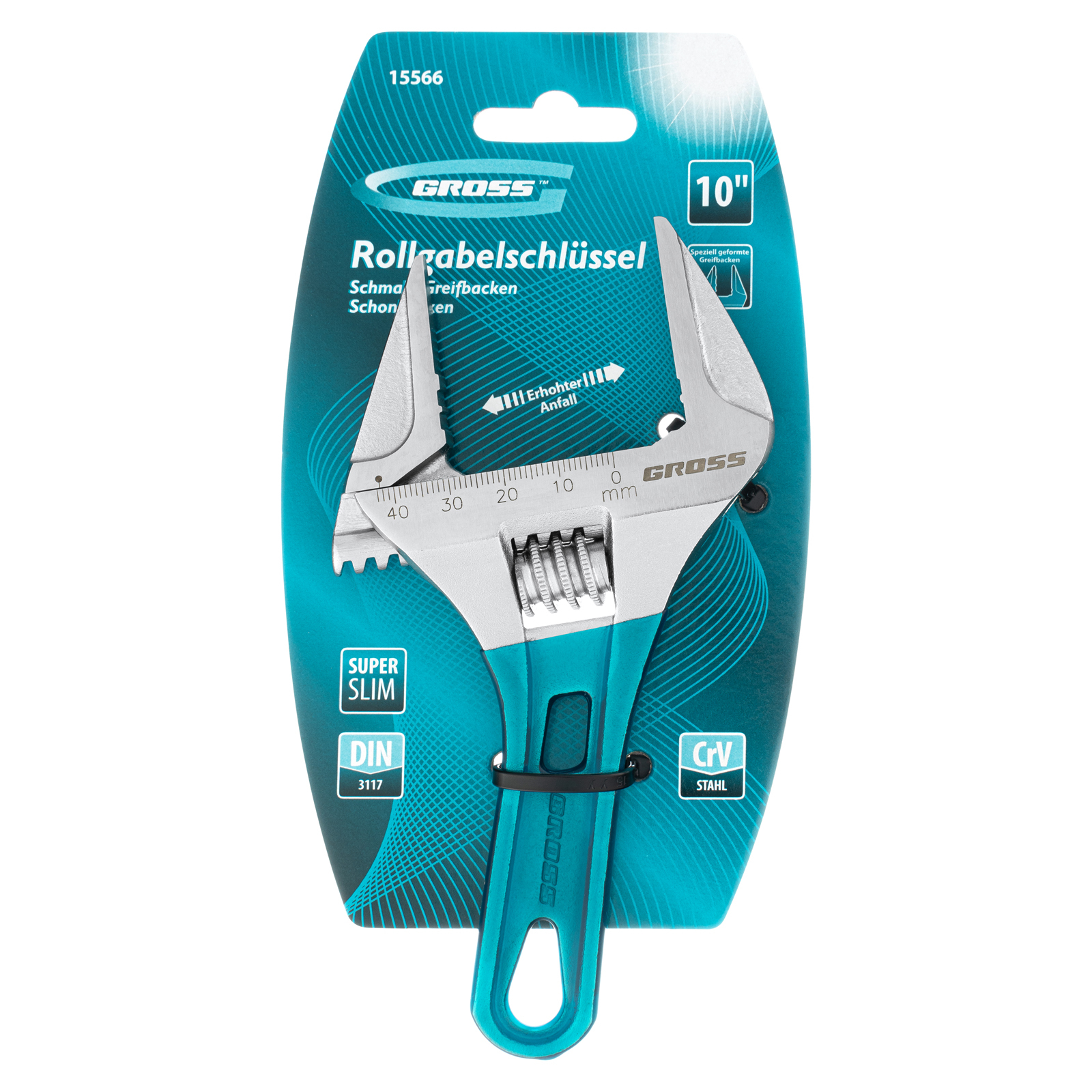 <p>Разводной ключ Gross 15566 длиной 160 мм, из стали CrV, с укороченной ручкой и широким диапазоном раскрытия зева до 43 мм, подходит для работы как с мелкими, так и с крупными крепежными элементами. Губки раскрываются на 50% больше, чем у стандартных ключей. Ребристая рабочая поверхность губок обеспечивает надежный захват деталей и повышает точность работы.</p><h2>Преимущества</h2><ul><li>Надежность и долговечность — ключ выполнен из высококачественной хромованадиевой стали.</li><li>Укороченная рукоятка и тонкие губки — ключом удобно работать в труднодоступных местах.</li><li>Защита от ржавчины — хромированный корпус устойчив к коррозии, поэтому инструмент прослужит долго.</li><li>Облегченный корпус — ключом можно долго работать без усталости.</li></ul>