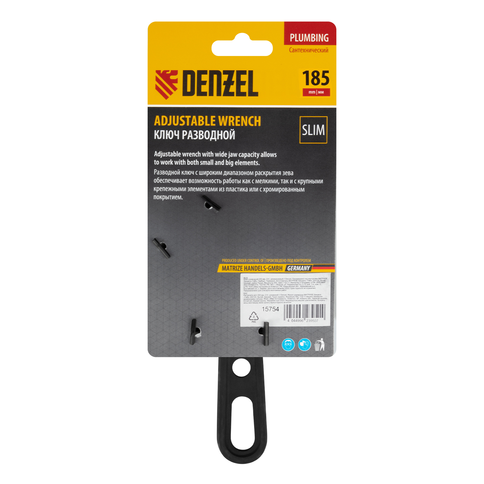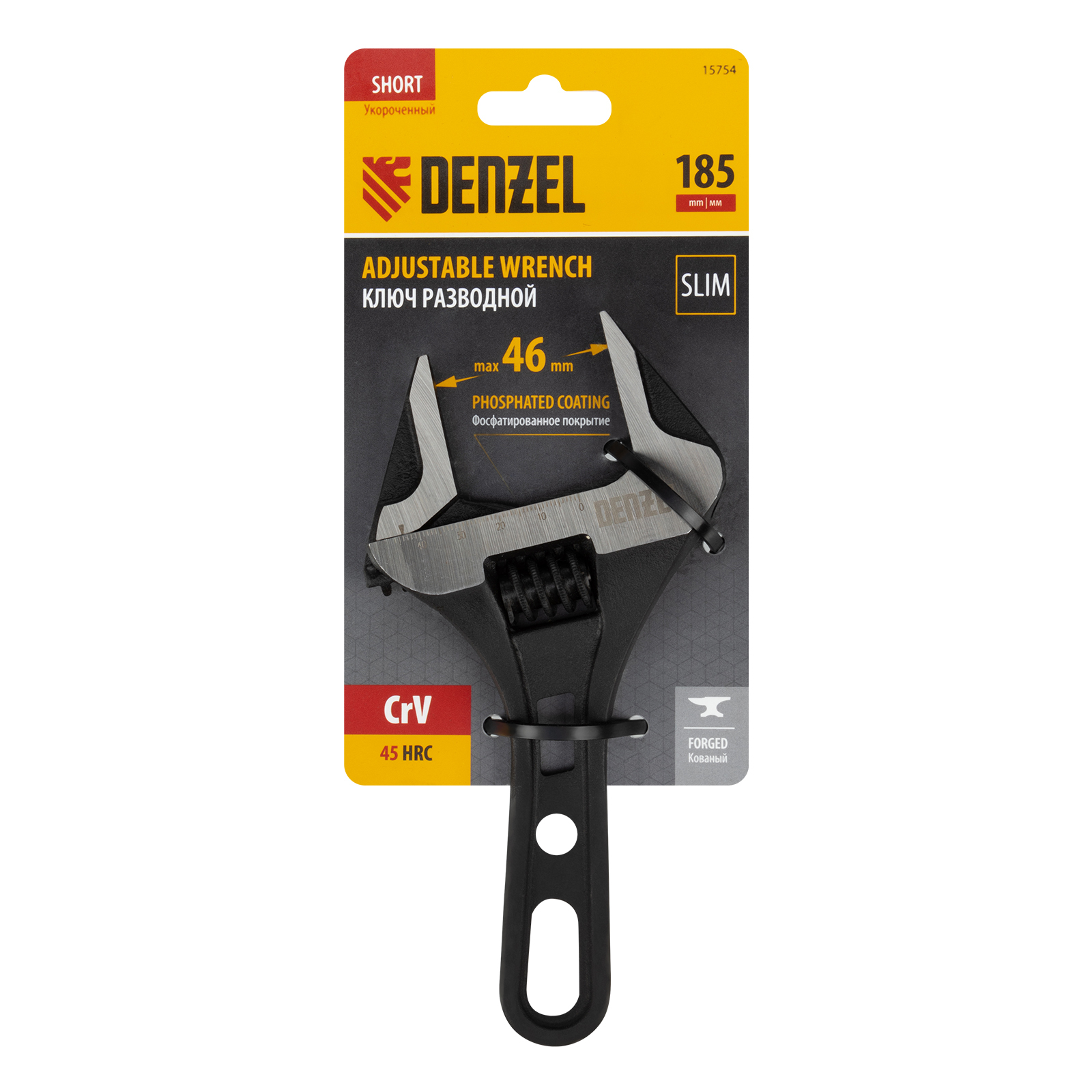 Ключ разводной кованый Denzel 15754 длиной 185 мм, из стали CrV, с укороченной рукояткой и увеличенным раскрытием губок, используется для монтажа и демонтажа крепежных элементов диаметром до 46 мм. Благодаря тонким губкам и укороченной рукоятке удобен для работы в труднодоступных местах. Имеет широкую область применения: сантехнические работы, мелкий бытовой ремонт, полупрофессиональная сфера и т. д.