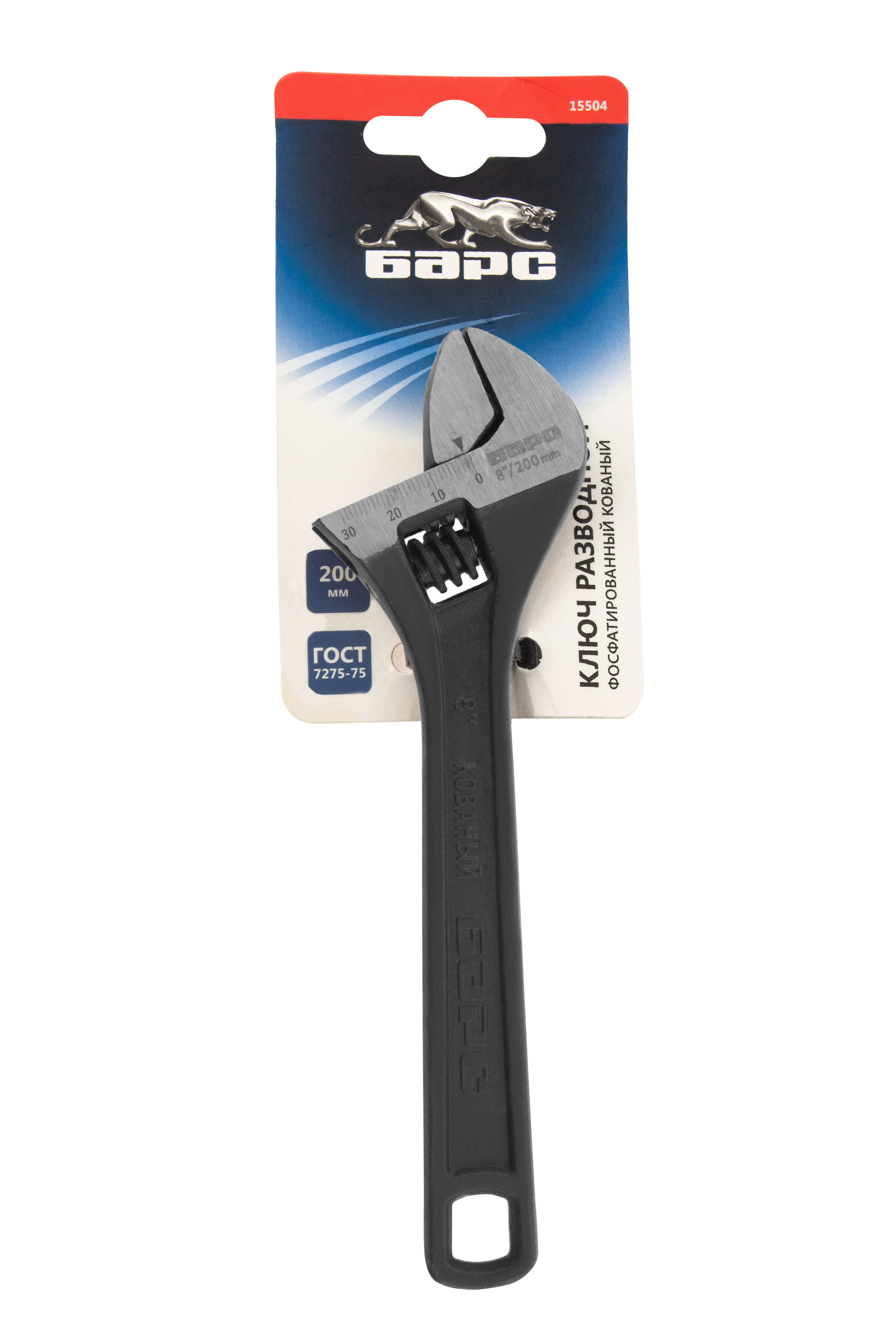 <p>Разводной ключ Барс 15504 длиной 200 мм используется для монтажа и демонтажа крепежных элементов. Заменяет собой целый комплект обычных гаечных ключей. Губки можно разводить на точно заданное расстояние, что позволяет захватывать детали различного размера. Разводной ключ пригодится для проведения слесарных, сантехнических, ремонтных работ.</p><h2>Преимущества</h2><ul><li>Прочность — ключ изготовлен из высококачественной хромованадиевой стали.</li><li>Коррозионная стойкость — фосфатное покрытие защищает червячный винтовой механизм от воздействия влаги.</li><li>Точность выполняемых работ — на губках имеется градуировка и точечная риска.</li><li>Эргономичность — обливная рукоятка удобно ложится в руку и имеет отверстие для подвесного хранения.</li></ul>