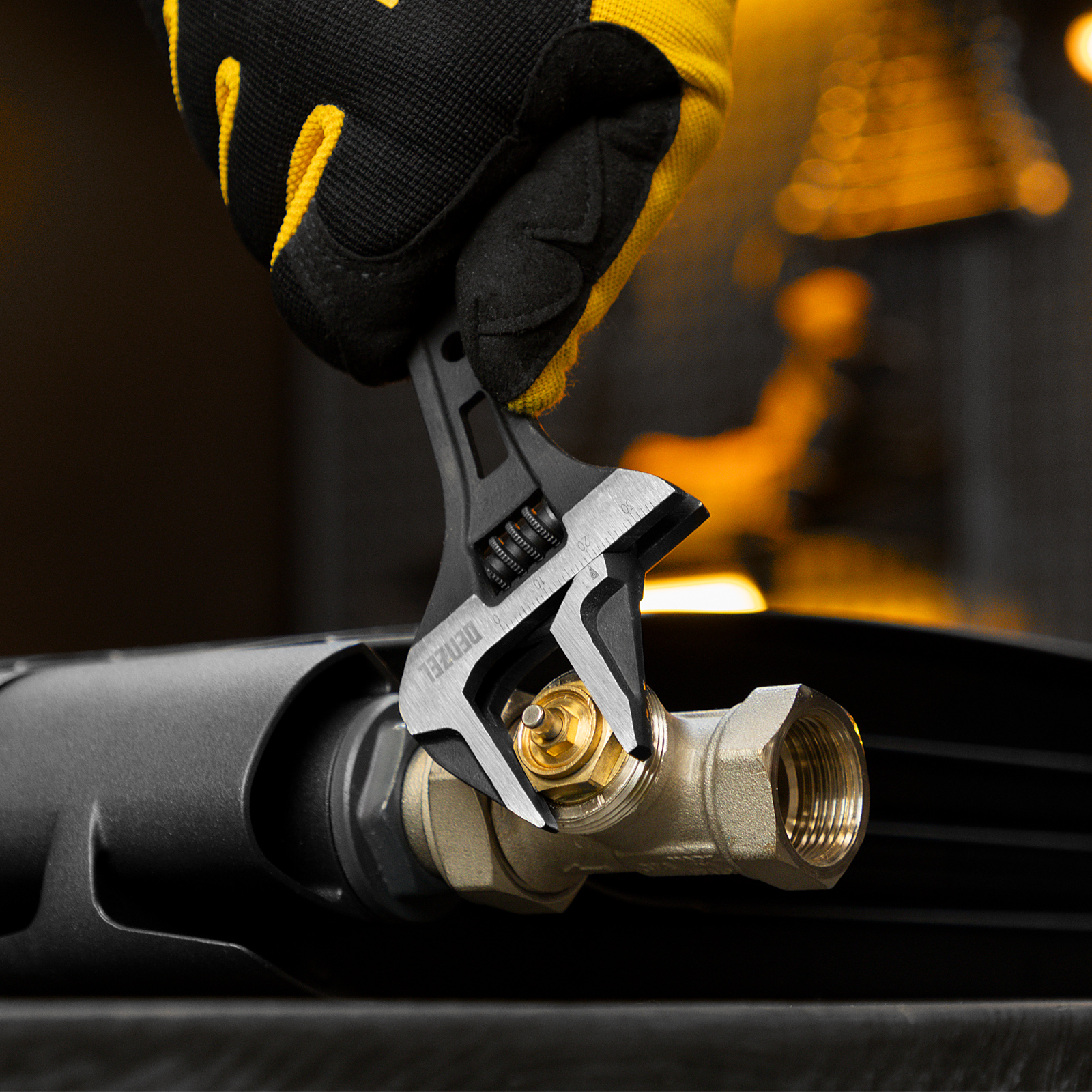 - Удобная эксплуатация — метрическая линейка на ключе помогает выставить нужный размах зева.