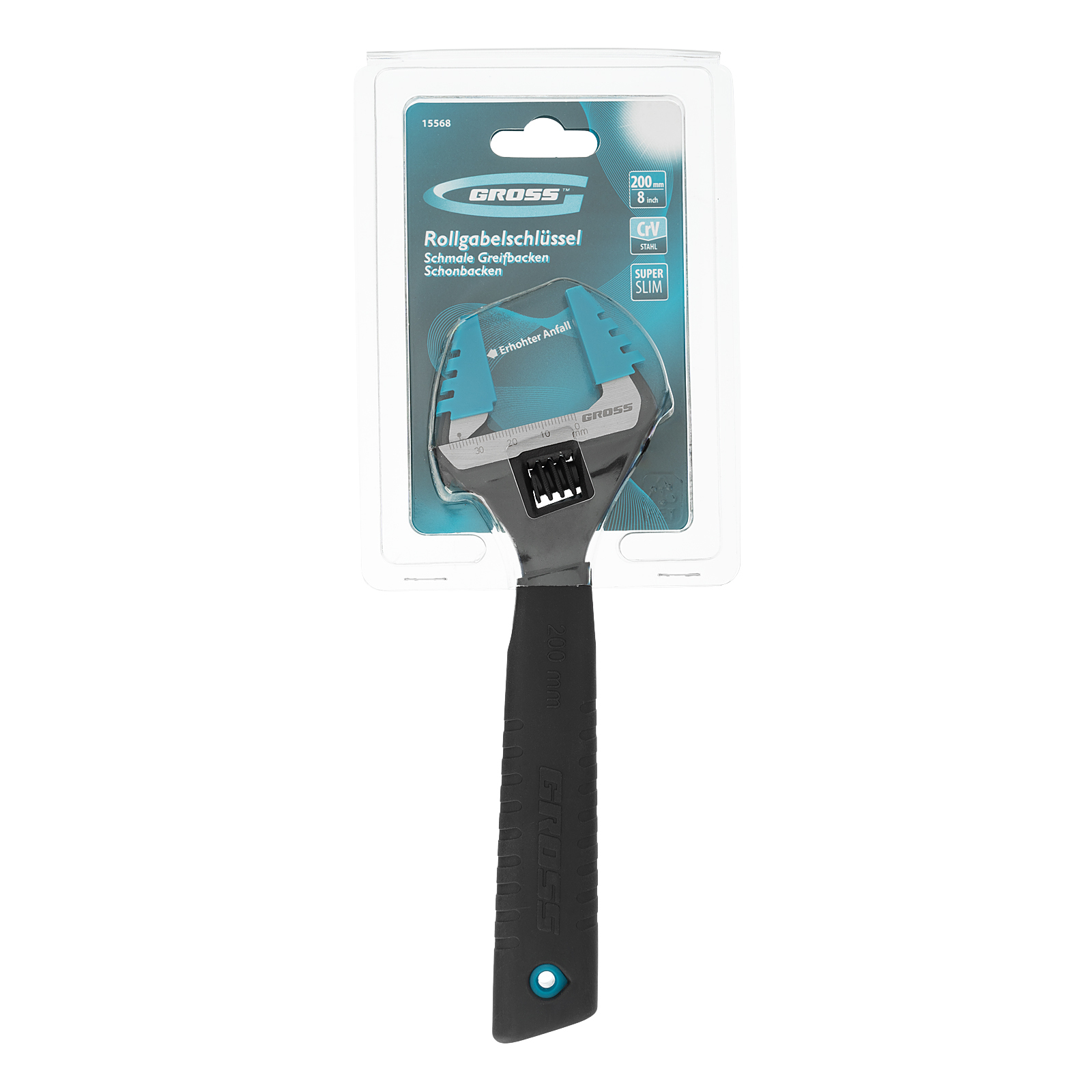Ключ разводной, 200 мм, CrV, тонкие губки, защитные насадки Gross