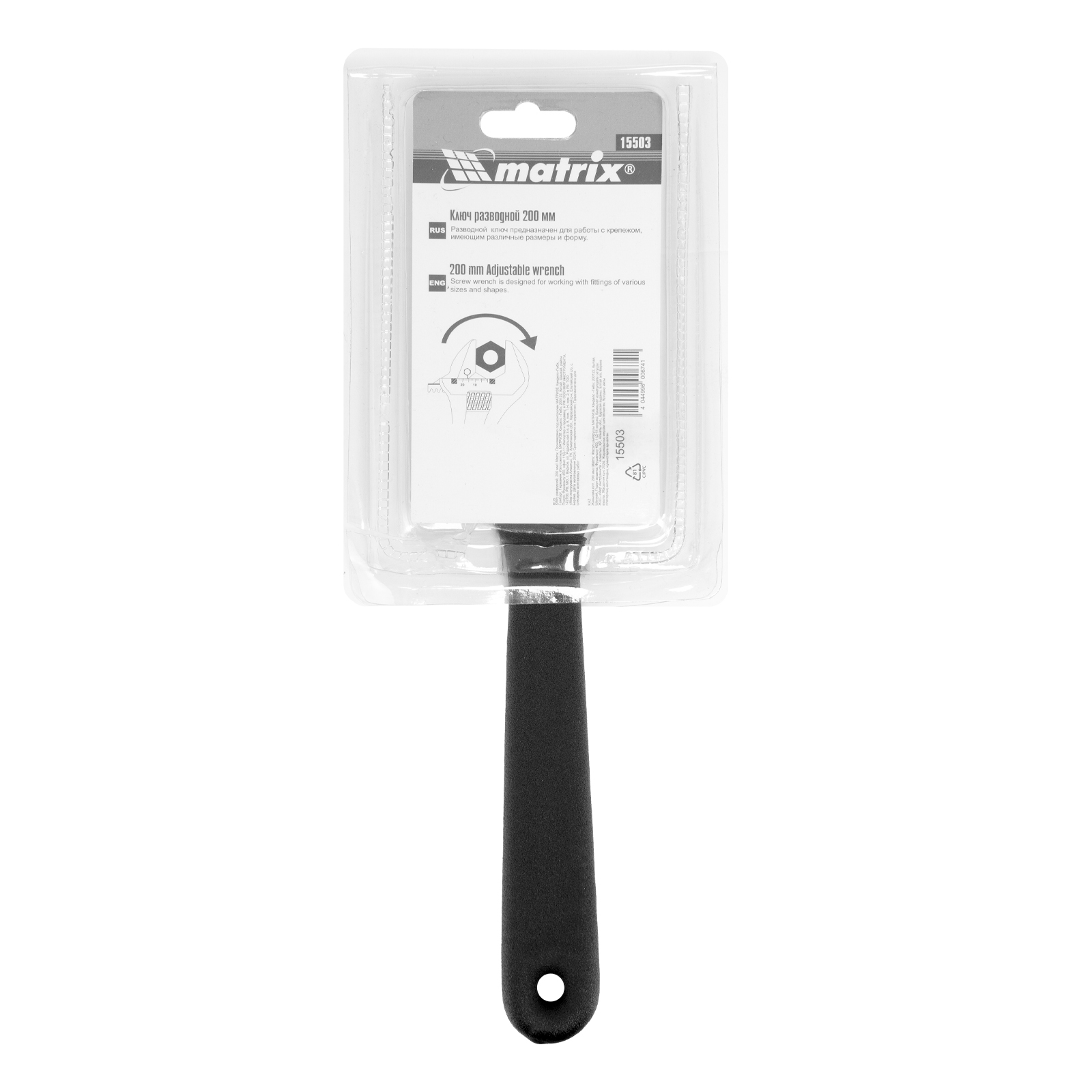 <p>Разводной ключ Matrix 15503 длиной 200 мм используется для монтажа и демонтажа крепежных элементов. Заменяет собой целый комплект обычных гаечных ключей. Губки можно разводить на точно заданное расстояние, что позволяет захватывать детали различного размера. Разводной ключ пригодится для проведения слесарных, сантехнических, ремонтных работ.</p><h2>Преимущества</h2><ul><li>Прочность — ключ изготовлен из высококачественной углеродистой стали 45 и прошел селективную закалку.</li><li>Коррозионная стойкость — фосфатное покрытие защищает червячный винтовой механизм от воздействия влаги.</li><li>Точность выполняемых работ — на губках имеется градуировка и точечная риска.</li><li>Эргономичность — обливная рукоятка удобно ложится в руку и имеет отверстие для подвесного хранения.</li></ul>