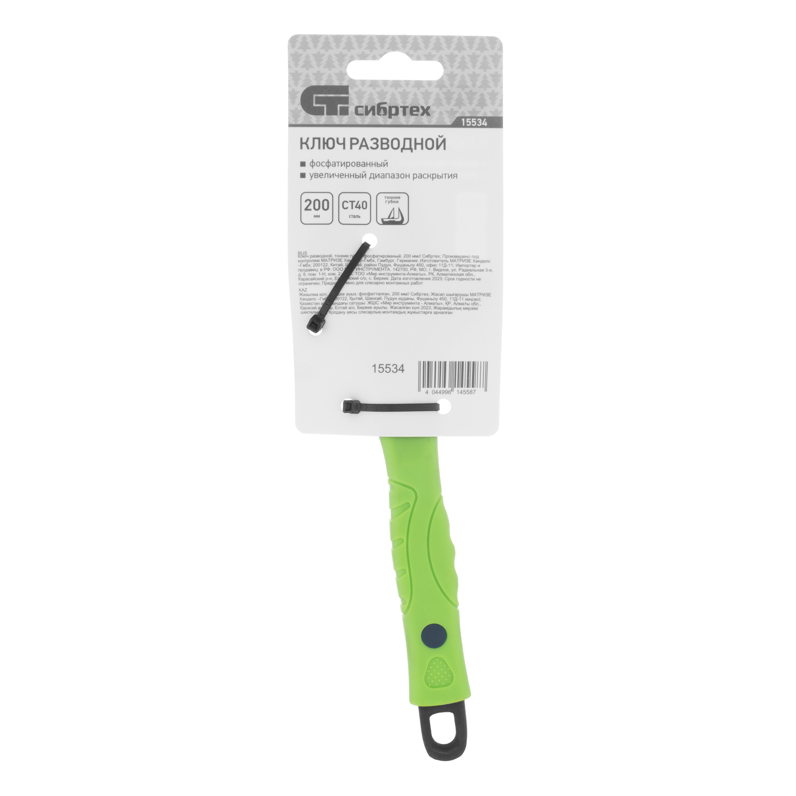 <p>Фосфатированный разводной ключ с тонкими губками Сибртех 15534 длиной 200 мм применяется для монтажа и демонтажа гаек, болтов и других резьбовых соединений. Ширина зева регулируется до 39 мм, что на 30% больше, чем у стандартных разводных ключей, — это позволяет работать как с мелкими, так и с крупными деталями. Тонкие удлиненные губки облегчают работу в труднодоступных местах.</p><h2>Преимущества</h2><ul><li>Прочность и износостойкость — ключ изготовлен из хромованадиевой стали 40CRV высокой твердости.</li><li>Антикоррозионное покрытие — фосфатированная поверхность устойчива к воздействию влаги.</li><li>Удобная и точная работа — на губки нанесены точечная риска и миллиметровая шкала.</li><li>Эргономичность — рукоятка с нескользящей накладкой удобно ложится в руку, что снижает усталость при интенсивной работе.</li></ul>