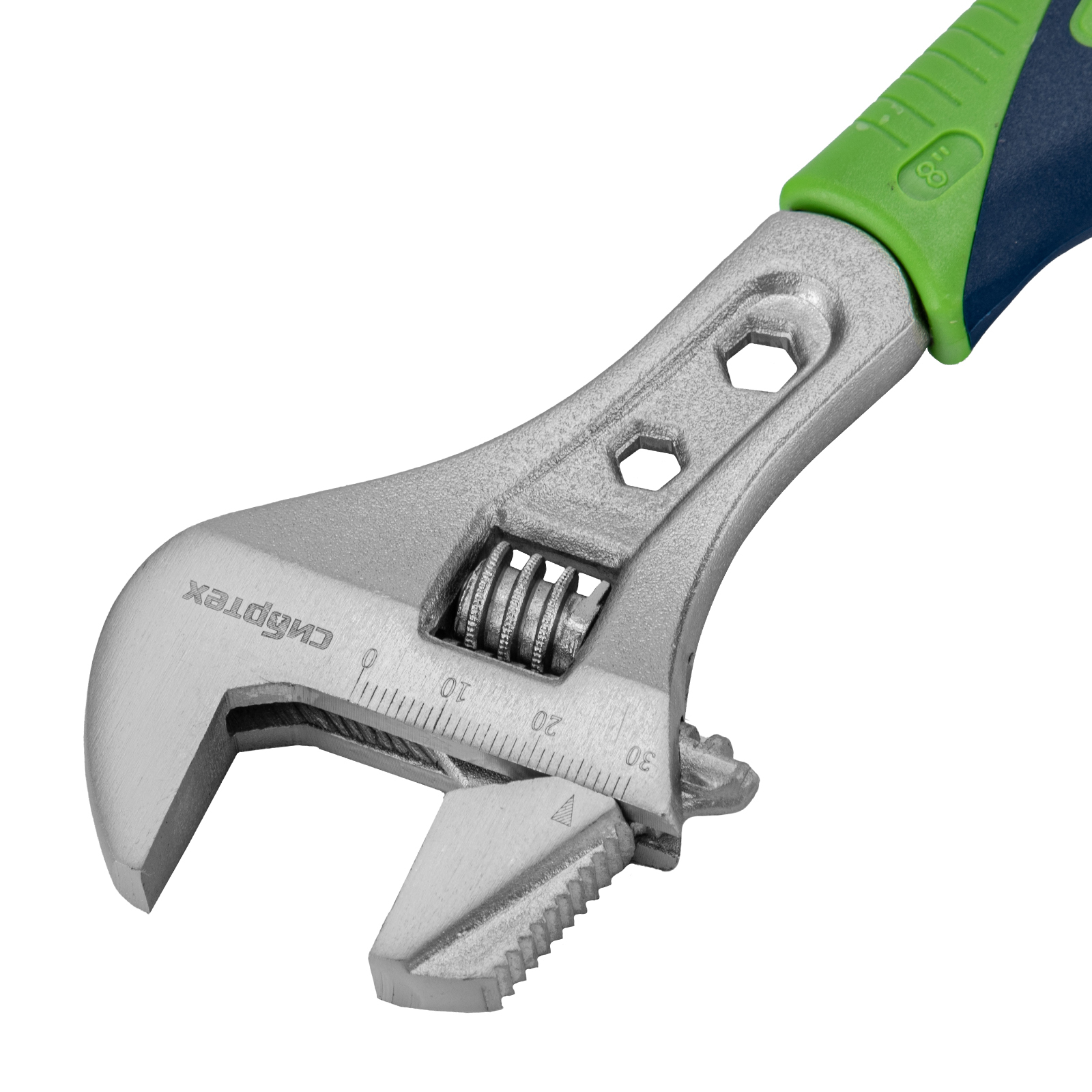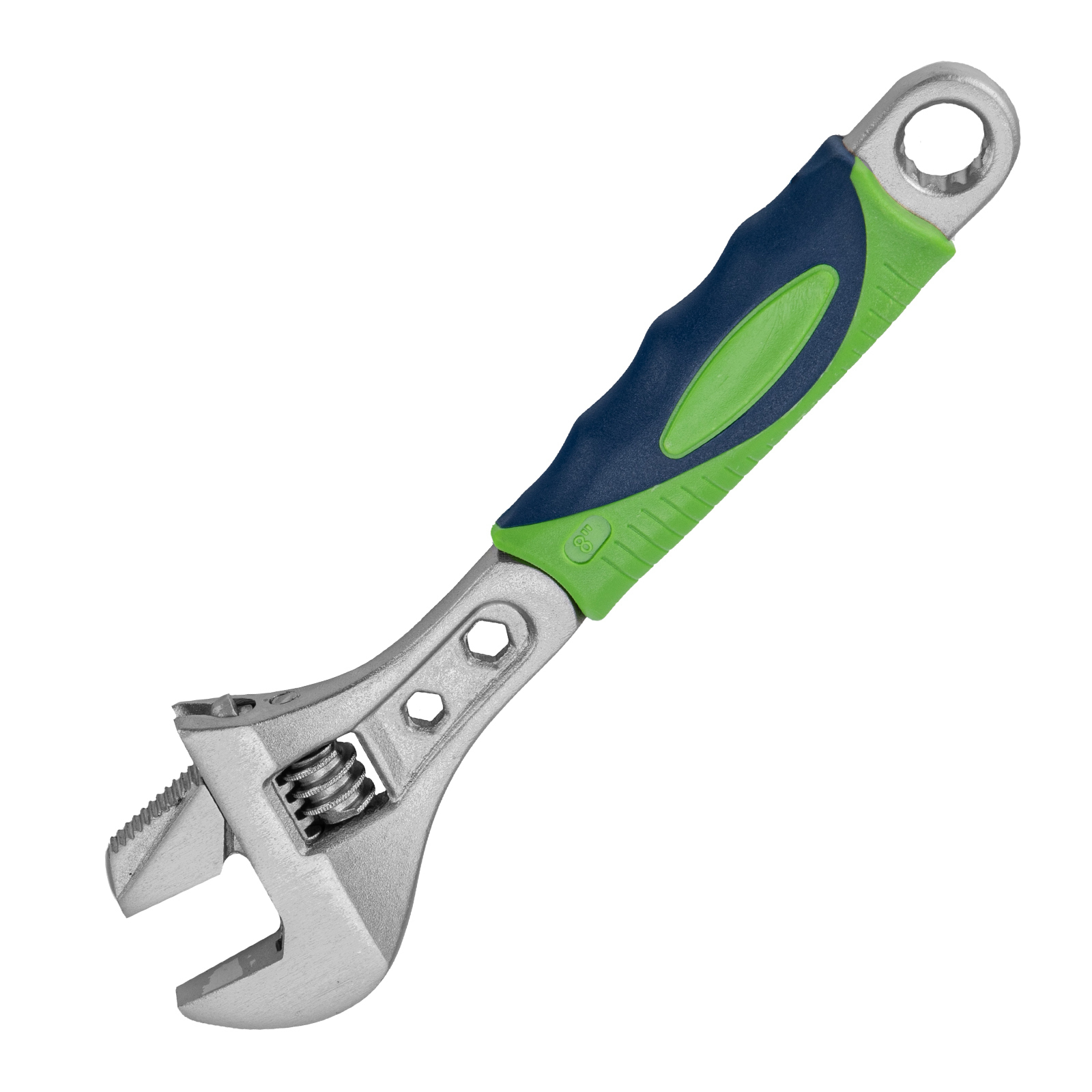 Разводной ключ Сибртех 15598 длиной 200 мм, с переставной губкой и двухкомпонентной рукояткой, предназначен для выполнения монтажных работ. Позволяет справляться с болтами разного размера и способен заменить целый арсенал гаечных ключей. Переставная губка с зазубринами позволяет использовать ключ для работы предметами без специального профиля, например, трубами.