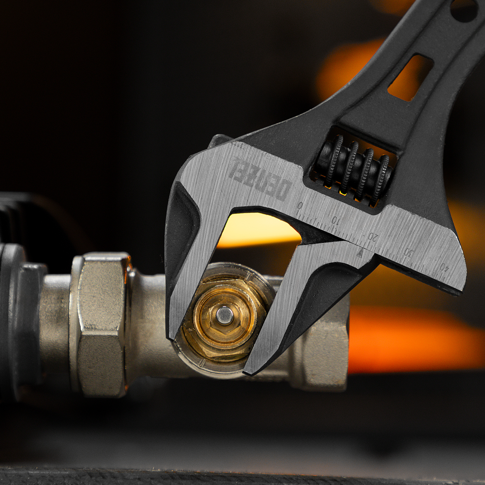 - Удобная эксплуатация — метрическая линейка на ключе помогает выставить нужный размах зева.