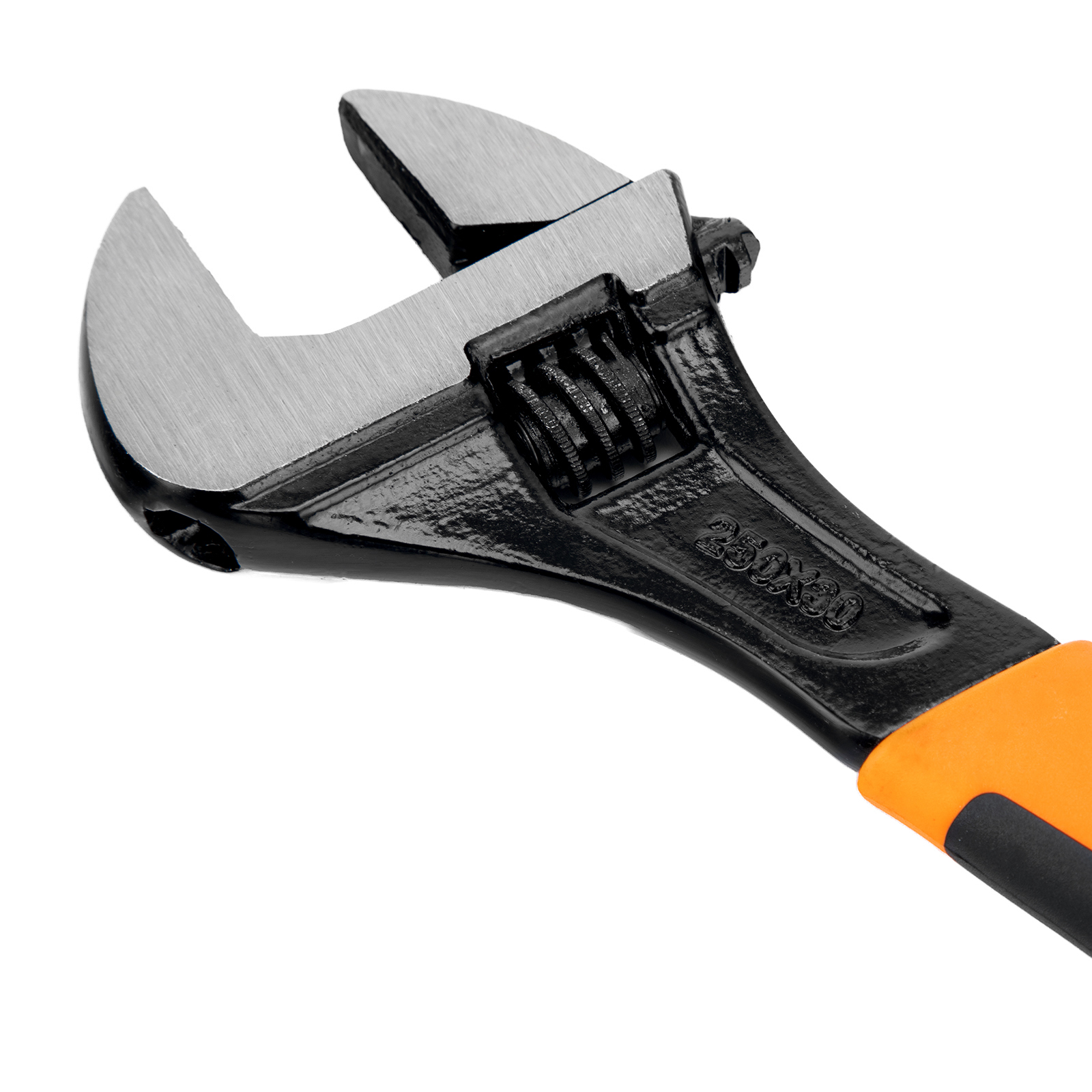 Разводной ключ Sparta 15543 длиной 250 мм, с двухкомпонентной рукояткой, имеет регулируемый зев и подходит для работы с любыми крепежными деталями диаметром до 30 мм, в том числе нестандартными. Инструмент заменяет целый комплект гаечных ключей и пригодится для бытового применения.