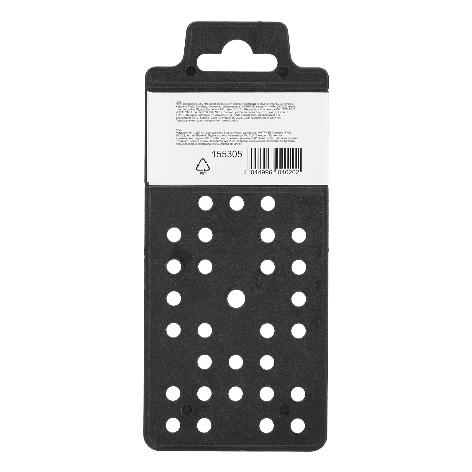 <p>Хромированный разводной ключ Sparta 155305 длиной 250 мм — инструмент для выполнения мелких ремонтных работ. Регулировка размера зева позволяет работать с различными крепежами, в том числе нестандартных размеров. Ключ пригодится слесарям, сантехникам, автомеханикам и начинающим мастерам.</p><h2>Преимущества</h2><ul><li>Долгий срок службы — ключ выполнен из инструментальной углеродистой стали 45 и прошел селективную закалку.</li><li>Антикоррозийная защита — хромовое покрытие предохраняет червячный винтовой механизм от воздействия влаги.</li><li>Точный захват деталей — на ключ нанесена градуировка, а на подвижную губку — точечная риска.</li><li>Малый вес 0,467 кг — длительная работа не вызывает дискомфорт.</li></ul>