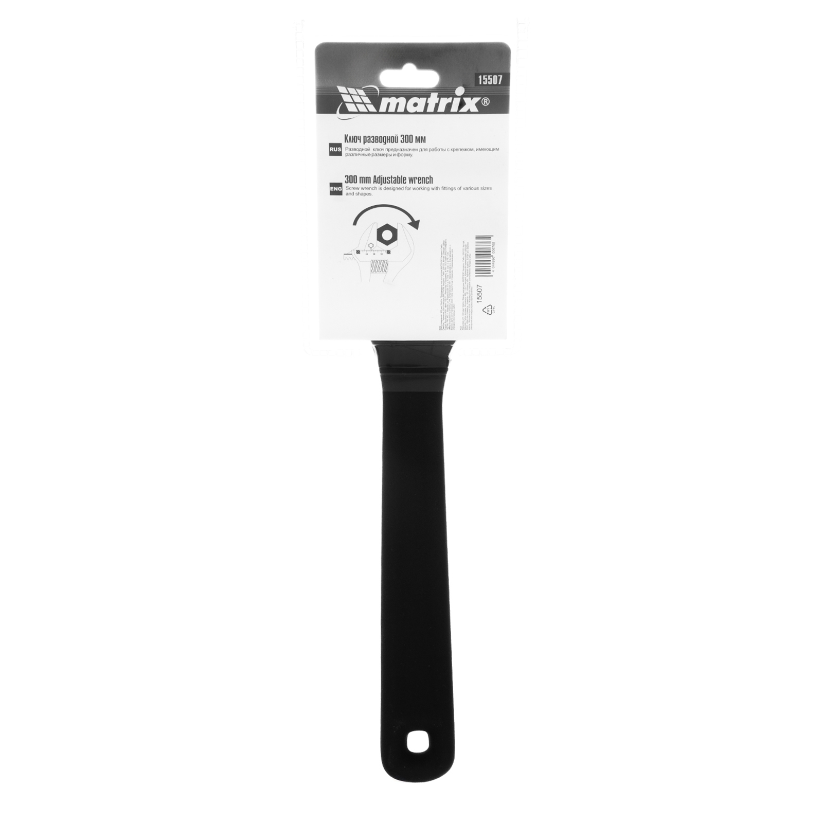 <p>Разводной ключ Matrix 15507 длиной 300 мм используется для монтажа и демонтажа крепежных элементов. Заменяет собой целый комплект обычных гаечных ключей. Губки можно разводить на точно заданное расстояние, что позволяет захватывать детали различного размера. Разводной ключ пригодится для проведения слесарных, сантехнических, ремонтных работ.</p><h2>Преимущества</h2><ul><li>Прочность — ключ изготовлен из высококачественной углеродистой стали 45 и прошел селективную закалку.</li><li>Коррозионная стойкость — фосфатное покрытие защищает червячный винтовой механизм от воздействия влаги.</li><li>Точность выполняемых работ — на губках имеется градуировка и точечная риска.</li><li>Эргономичность — обливная рукоятка удобно ложится в руку и имеет отверстие для подвесного хранения.</li></ul>