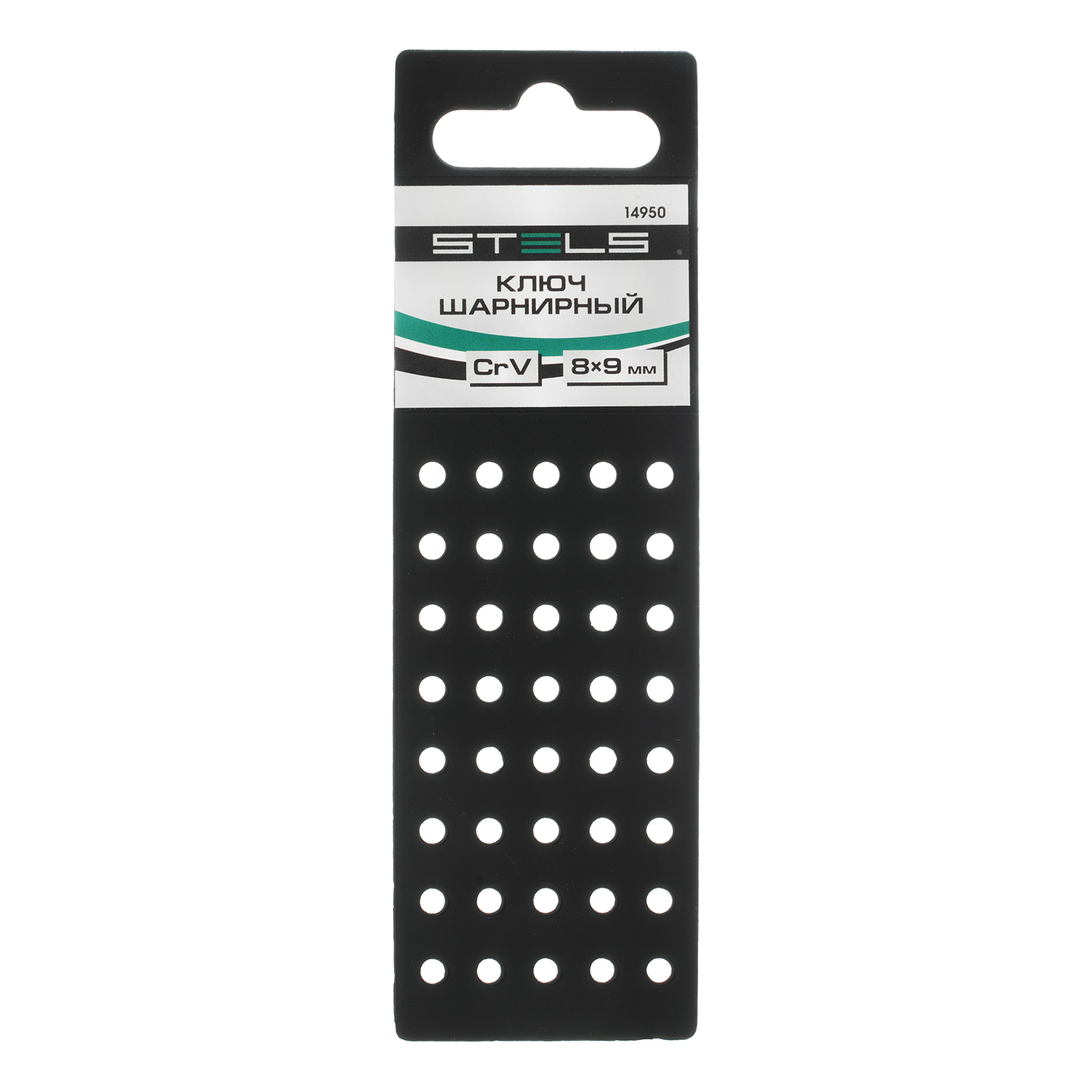 <p>Шарнирный ключ Stels 14950 из стали CrV, имеет 2 рабочие головки размером 8 и 9 мм, с 12-гранным профилем, и предназначен для работы с болтовыми и гаечными соединениями. Головки обеспечивают плотный обхват крепежа и удобны для работы в стесненных условиях — величина хода составляет всего 30°. Ключ используется для ремонта автомобилей и других слесарно-монтажных работ.</p><h2>Преимущества</h2><ul><li>Комфортная работа с крепежом в труднодоступных местах — шарнирное крепление головок позволяет передавать крутящий момент под углом.</li><li>Высокая прочность и износостойкость — ключ изготовлен из хромованадиевой стали, твердость рабочих частей составляет 50 HRC.</li><li>Защита от коррозии и механических повреждений — поверхность ключа хромирована.</li><li>Несложный уход — достаточно просто протереть зеркальную поверхность инструмента после окончания работы.</li></ul>