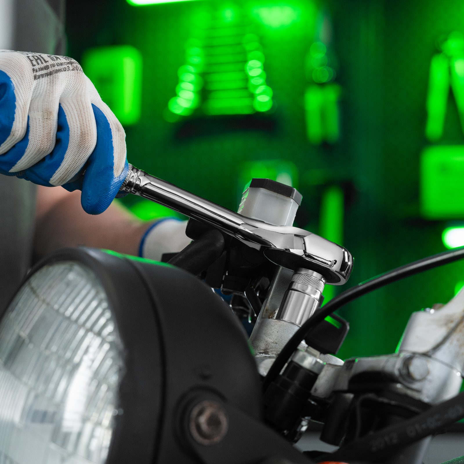- Надежная фиксация — шариковый замок крепко удерживает торцевую головку, поэтому она не соскочит во время работы.