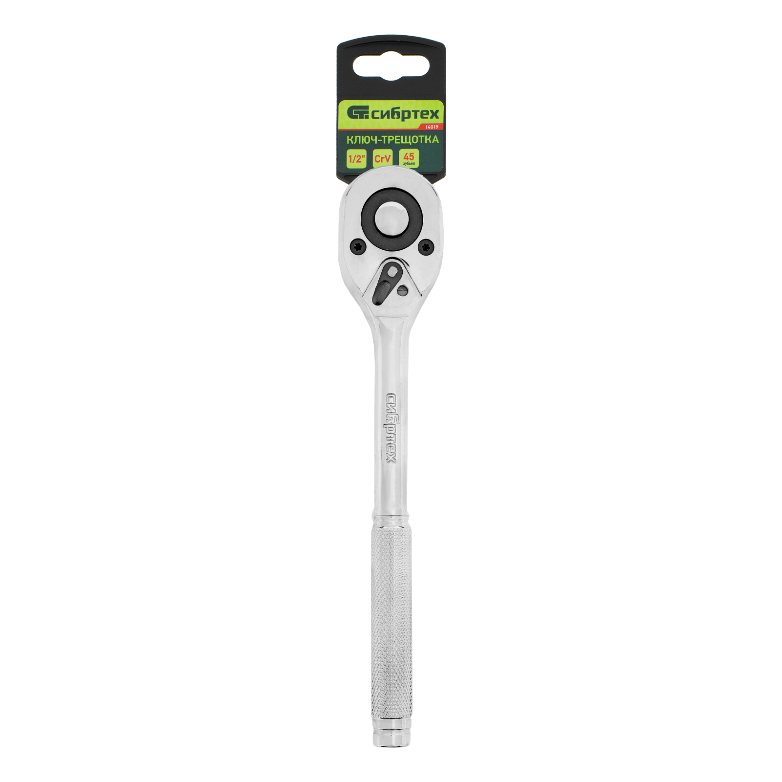 Ключ-трещотка 1/2", 45 зубьев, цельнометаллический, с быстрым сбросом, CrV, хром Сибртех