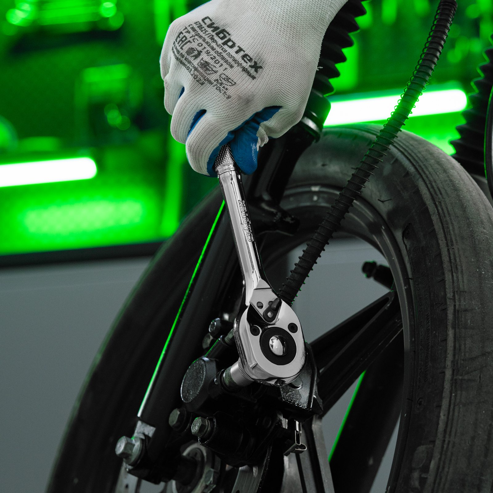 - Функция реверса — при помощи переключателя с металлическим флажком можно одним движением изменить направление вращения трещотки.