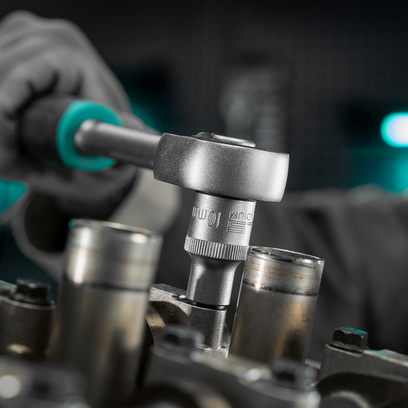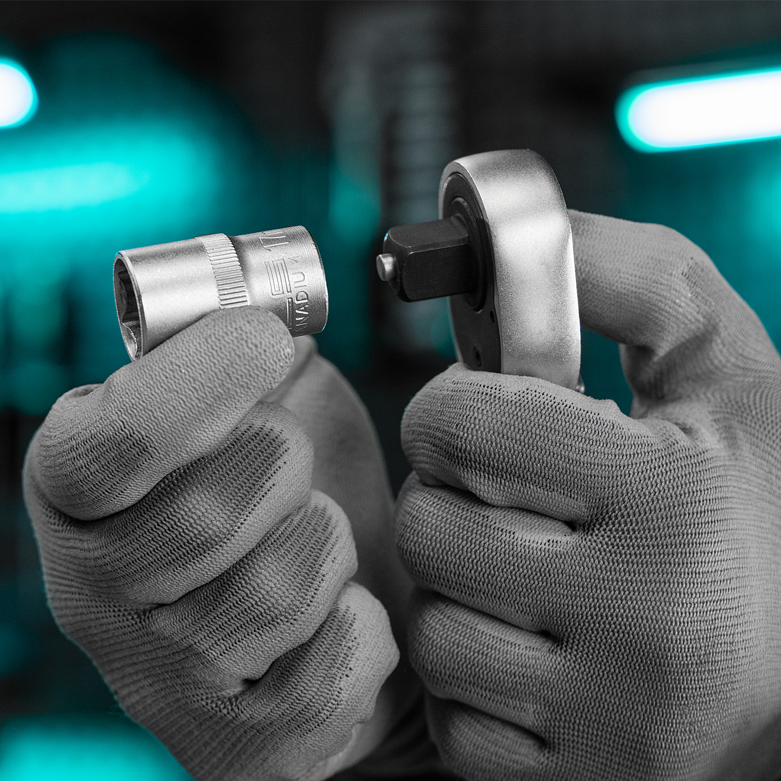 - Шариковый фиксатор — торцевые головки и другие насадки не соскакивают во время работы.