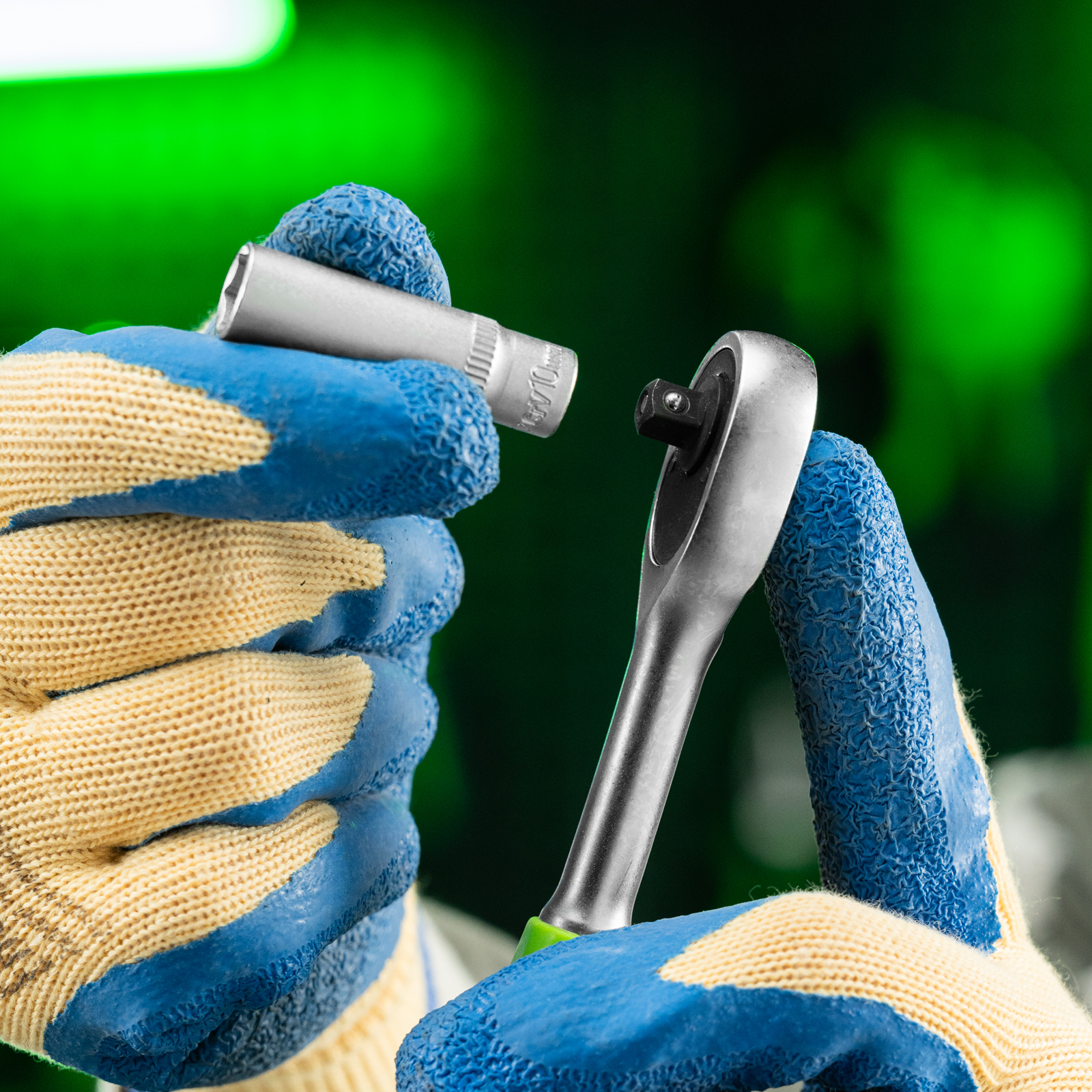 - Простая установка и замена насадки — механизм быстрого сброса позволяет моментально снимать торцевую головку.