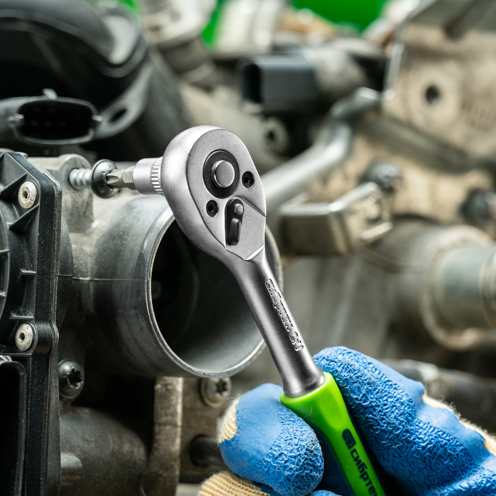 Ключ-трещотка 1/4", 45 зубьев, с быстрым сбросом, матовый хром Сибртех
