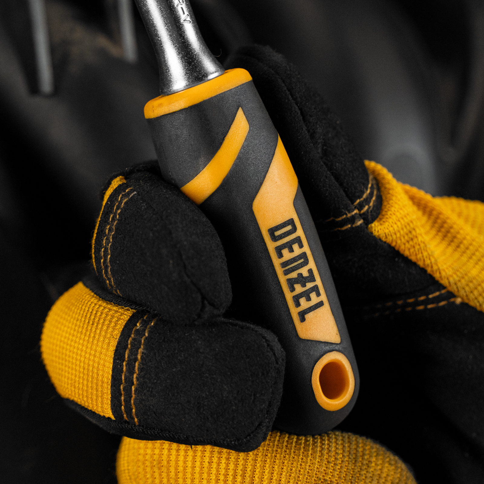 - Работа в сложных условиях — двухкомпонентная рукоятка характеризуется масло- и бензостойкостью.