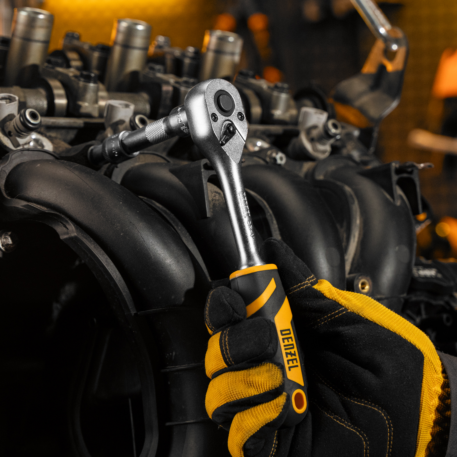 Ключ-трещотка Denzel 14032 из стали CrV, с присоединительным квадратом 3/8", с быстрым сбросом и храповым механизмом с 90 зубьями, предназначен для установки торцевых головок, а также адаптеров и удлинителей с посадочным размером соответствующего размера. Угол поворота трещотки составляет всего 4°, что упрощает работу в труднодоступных местах. Инструмент будет полезен в сервисном центре, на СТО, а также пригодится дома или в поездке.