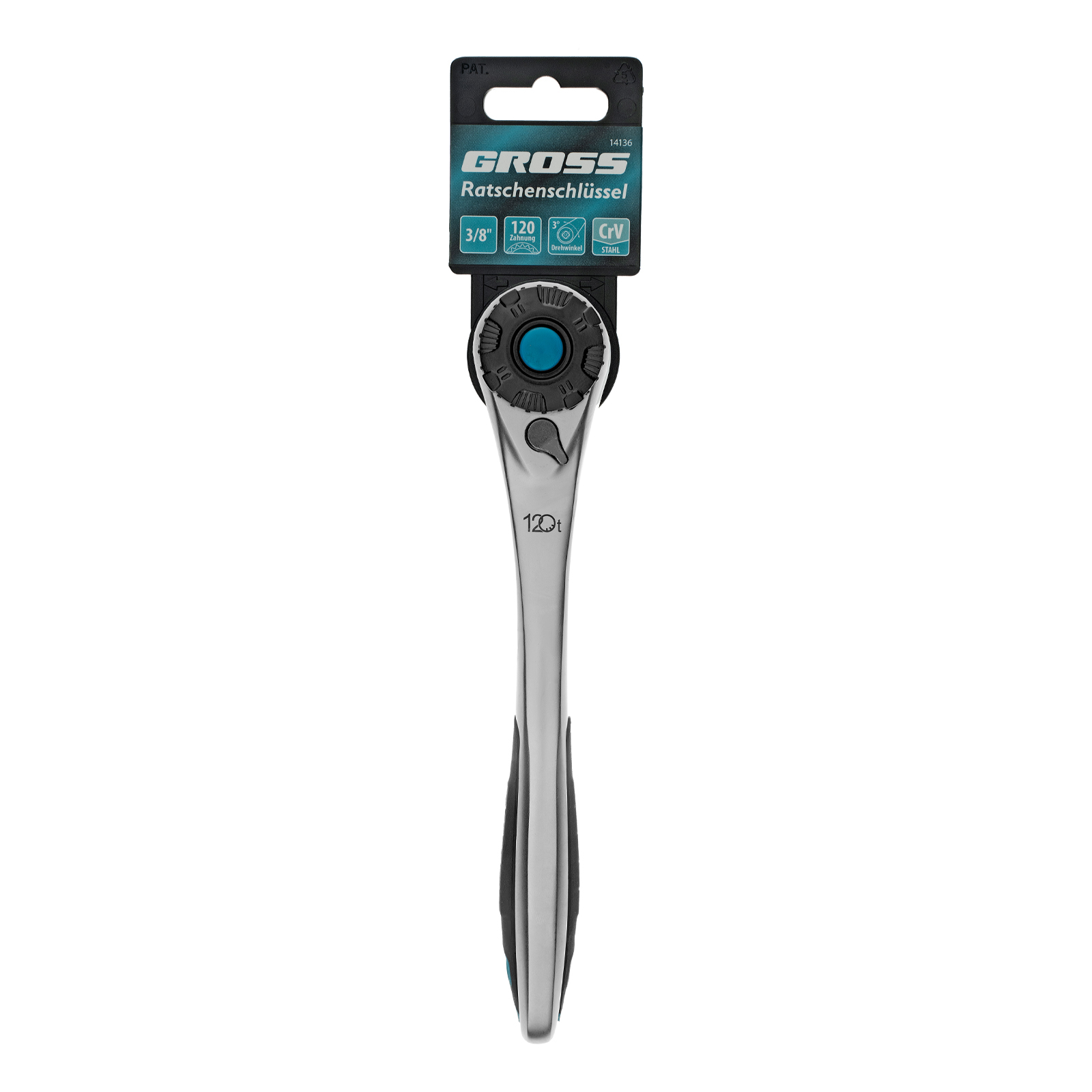 Ключ-трещотка 3/8", CrV, 120 зубьев, с быстрым сбросом, цельнометаллический, хром Gross