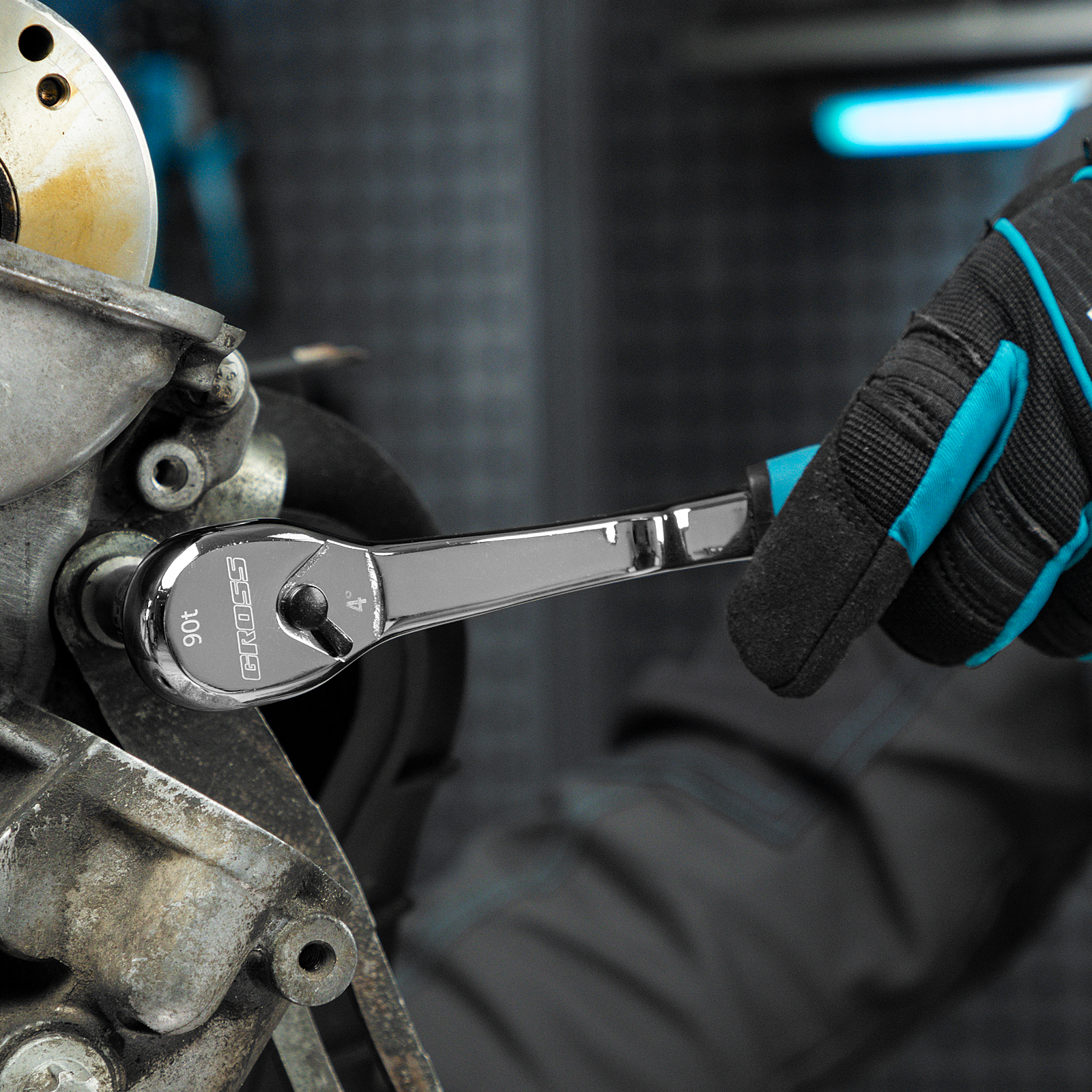 Ключ-трещотка 3/8", CrV, 90 зубьев, усиленный, хром Gross