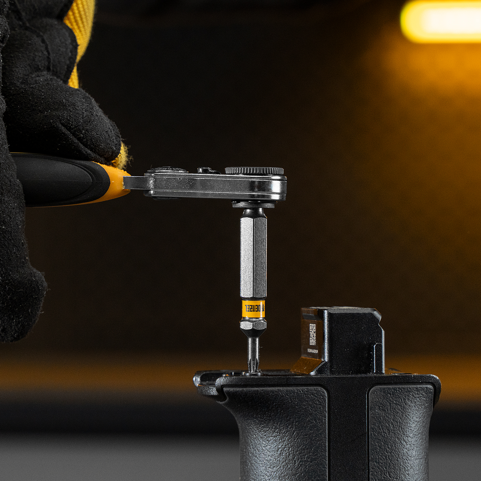 Ключ-трещотка для бит 1/4", 52 зуба, CrMo, адаптер для торцевых головок Denzel