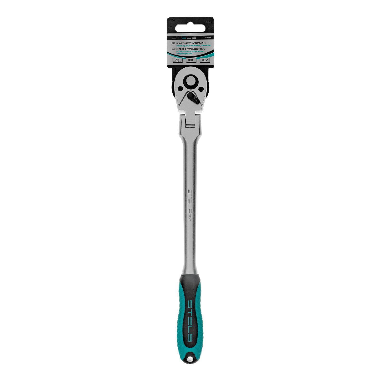Ключ-трещотка шарнирный 3/8", СrV, 72 зуба, с быстрым сбросом, матовый хром Stels