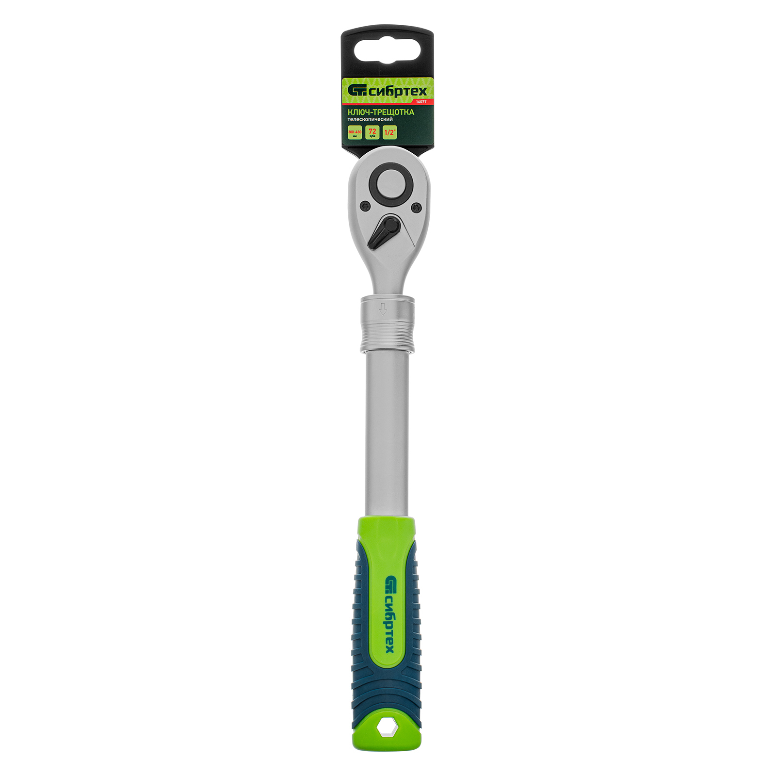 Ключ-трещотка телескопический 1/2", 300-430 мм, 72 зуба, с быстрым сбросом Сибртех