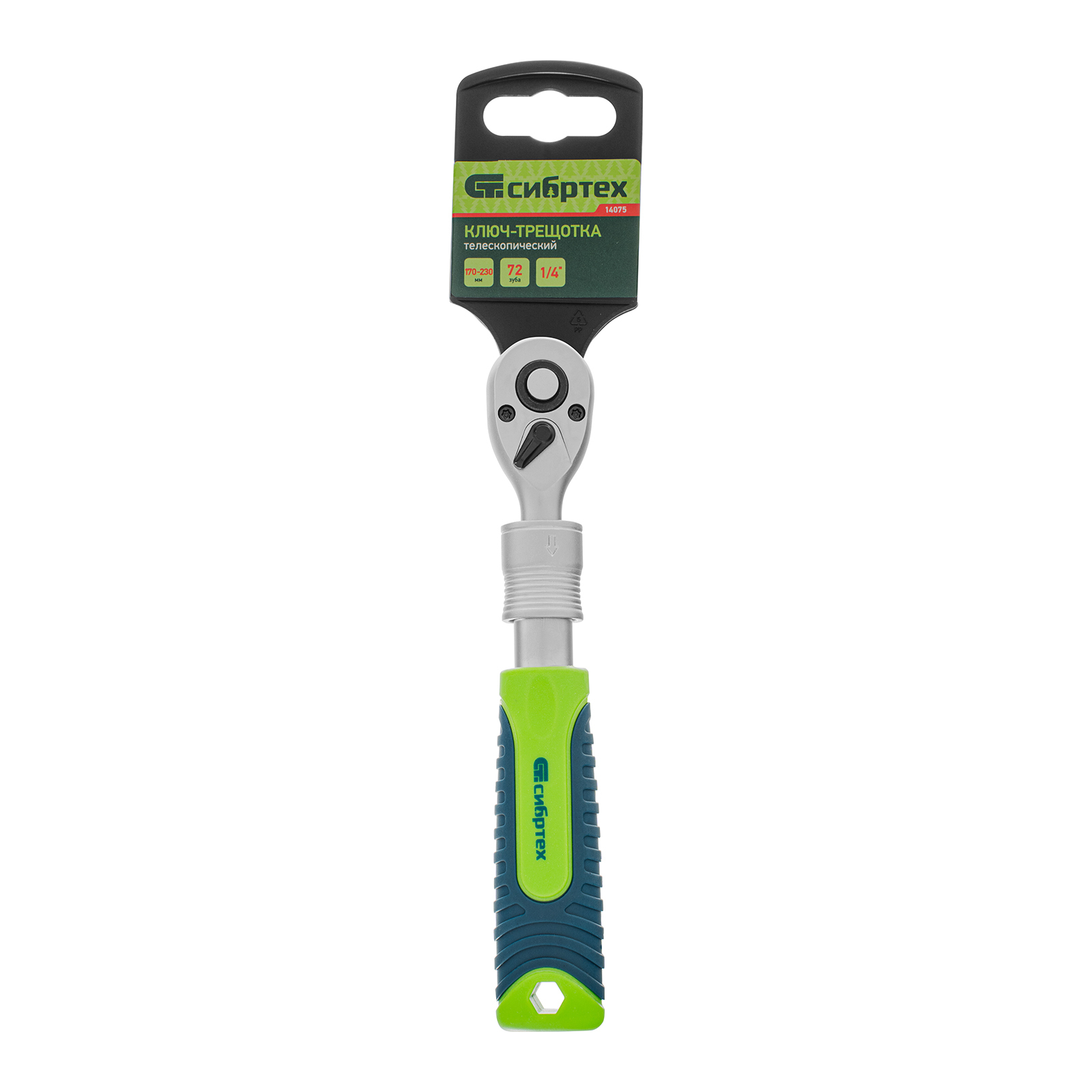 Ключ-трещотка телескопический 1/4", 170-230 мм, 72 зуба, с быстрым сбросом Сибртех