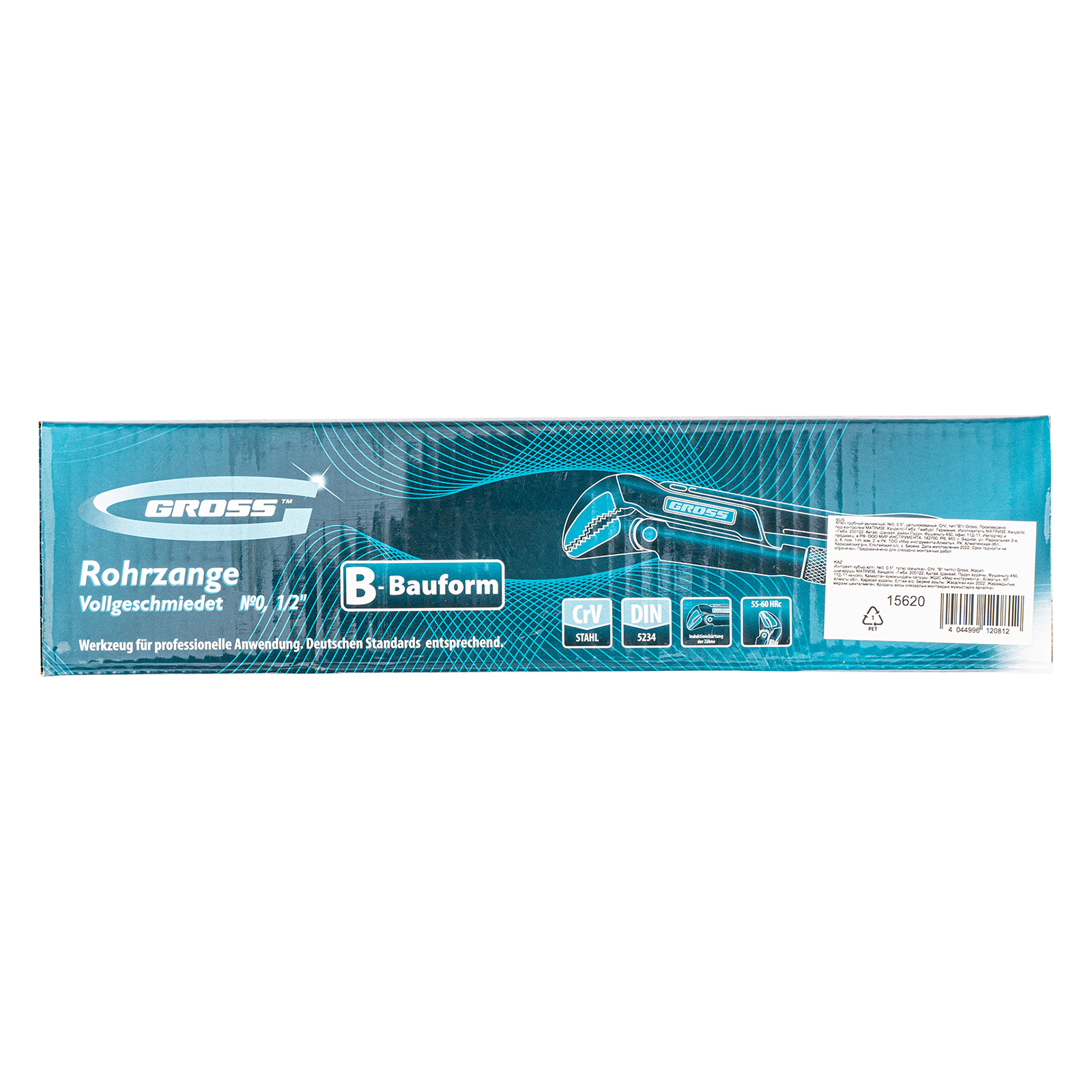 <p>Цельнокованый трубный рычажный ключ Gross №0 15620 из стали CrV, тип «В», служит для захвата и вращения труб и фитингов диаметром 0,5″. B-образные губки удобны для работы с плоскими и объемными деталями в труднодоступных местах. Рычажный механизм увеличивает усилие сжатия, что экономит силы мастера. Ключ пригодится частным и профессиональным мастерам для работы в быту и на производстве.</p><h2>Преимущества</h2><ul><li>Высокая прочность — цельнокованый корпус изготовлен из хромованадиевой стали, а губки закалены до твердости 57-60 HRC.</li><li>Надежная фиксация — гайка на регулировочном механизме снабжена стопорным кольцом.</li><li>Самоблокируемый захват деталей — зубья на ключе наклонены в противоположную от направления вращения сторону.</li><li>Коррозионная стойкость — на ключ нанесено защитное покрытие из порошковой эмали.</li></ul>