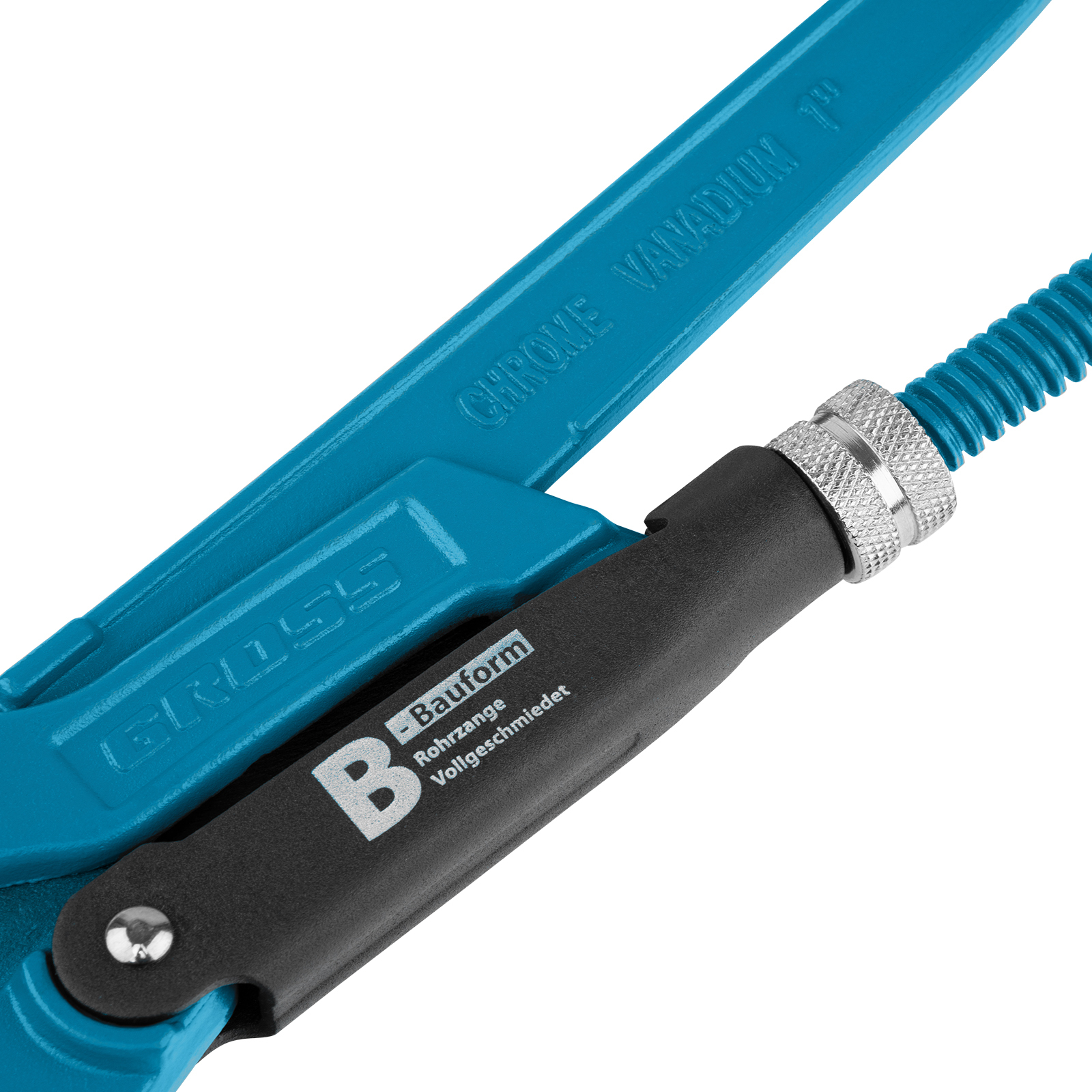 <p>Цельнокованый трубный рычажный ключ Gross №1 15621, из стали CrV, тип «В», служит для захвата и вращения труб и фитингов диаметром 1 дюйма. B-образные губки удобны для работы с плоскими и объемными деталями в труднодоступных местах. Рычажный механизм увеличивает усилие сжатия, что экономит силы мастера. Ключ пригодится частным и профессиональным мастерам для работы в быту и на производстве.</p><h2>Преимущества</h2><ul><li>Высокая прочность — цельнокованый корпус изготовлен из хромованадиевой стали, а губки закалены до твердости 57-60 HRC.</li><li>Надежная фиксация — гайка на регулировочном механизме снабжена стопорным кольцом.</li><li>Самоблокируемый захват деталей — зубья на ключе наклонены в противоположную от направления вращения сторону.</li><li>Коррозионная стойкость — на ключ нанесено защитное покрытие из порошковой эмали.</li></ul>