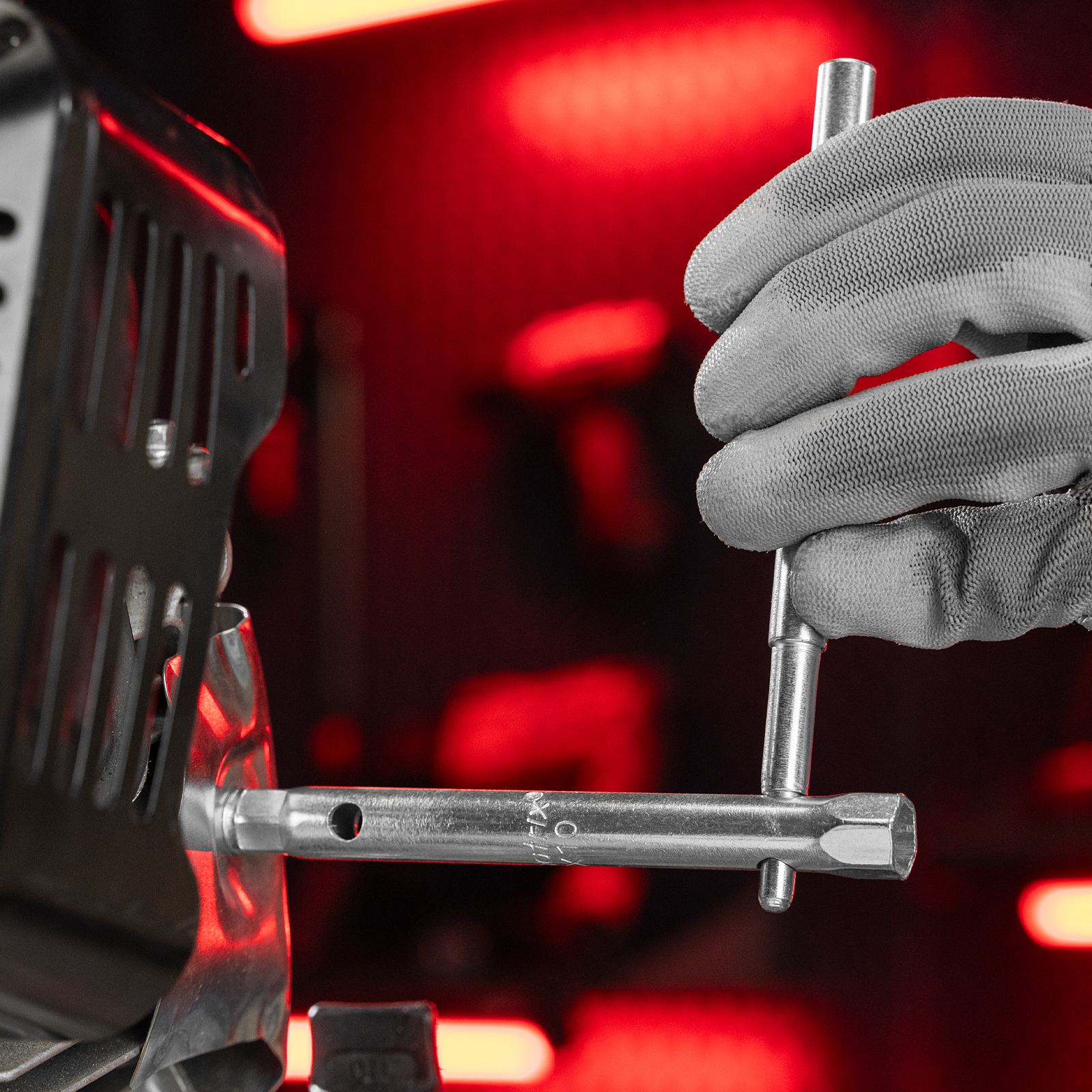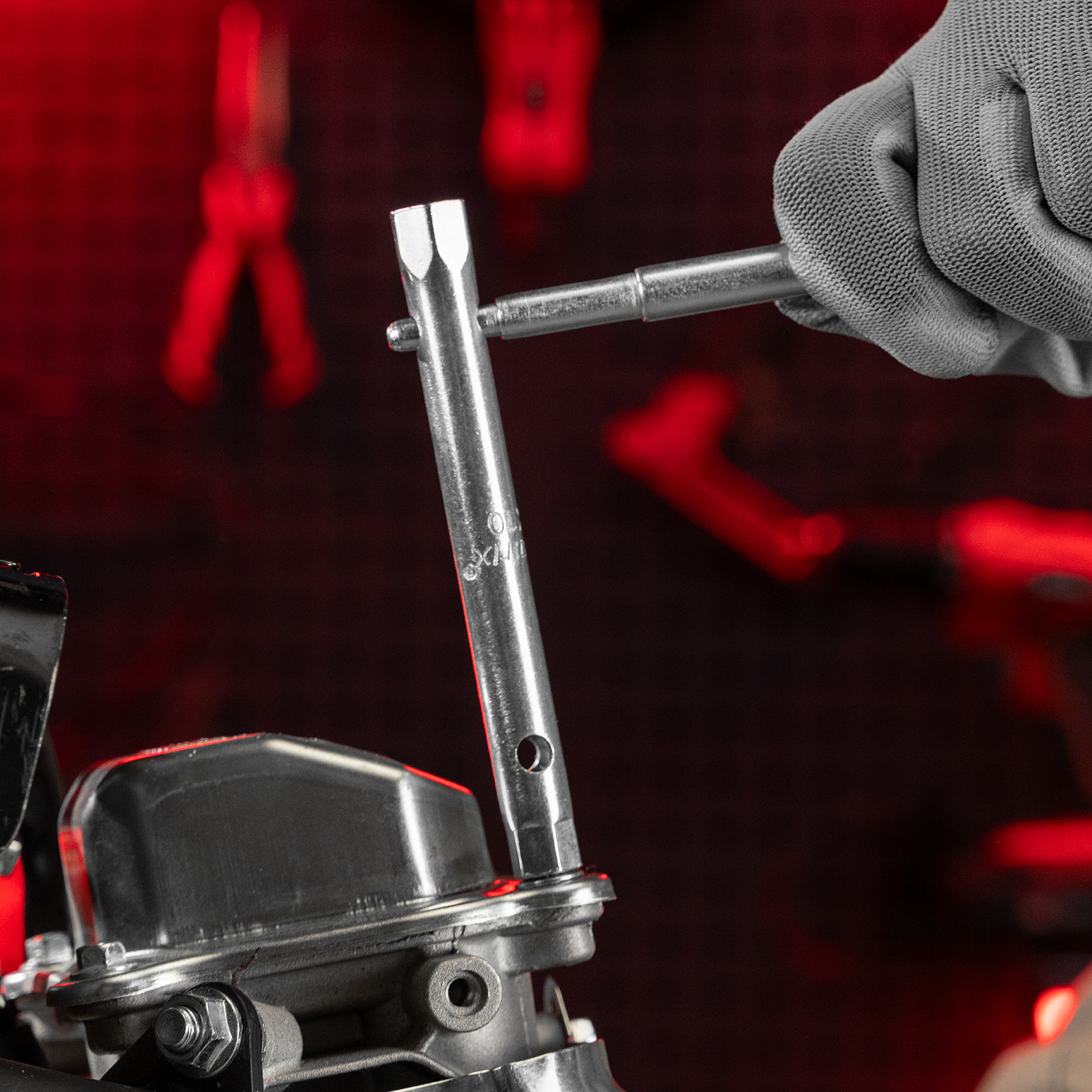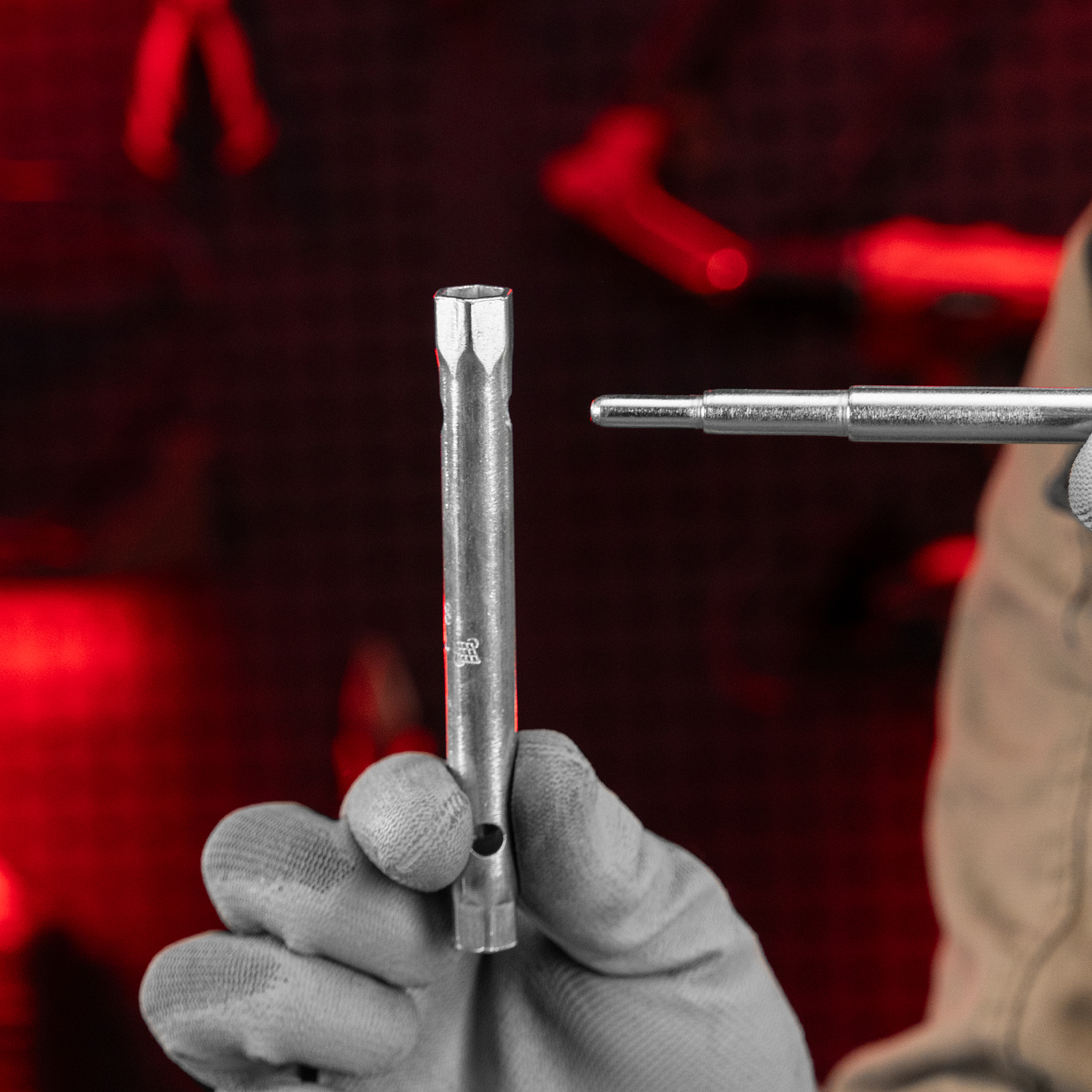 - Ключ имеет два шестигранных профиля, удобных для работы с крепежом размером 8 и 10 мм.