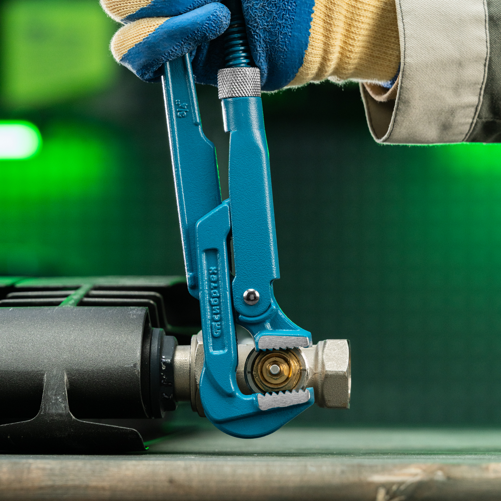 <p>Литой трубный рычажный ключ Сибртех №0 15757, тип «L», используется для захвата и вращения труб диаметром 3/4", а также других деталей со специальным профилем и без него. Рычажный механизм увеличивает рабочее усилие, снижая нагрузку на руки мастера. Инструмент рассчитан на бытовое и профессиональное применение.</p><h2>Преимущества</h2><ul><li>Прочность и долговечность — литая конструкция из закаленной легированной стали устойчива к нагрузке кручения, губки закалены до твердости 48-52 HRC.</li><li>Надежная фиксация — на регулировочном механизме с гайкой имеется стопорное кольцо.</li><li>Надежный захват — зубья прогрессивной формы наклонены против направления вращения.</li><li>Защита от коррозии — на инструмент нанесено порошковое покрытие.</li></ul>