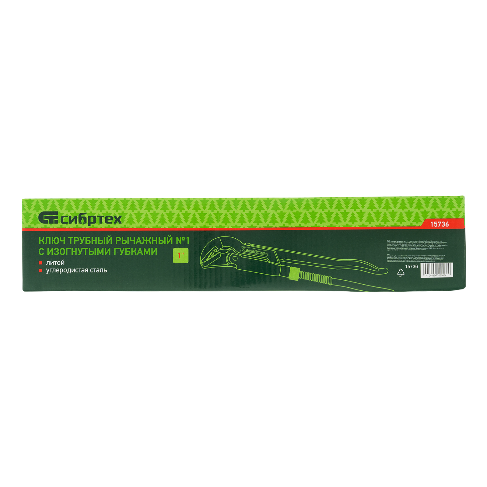 <p>Литой трубный рычажный ключ Сибртех №1 15736, тип «B», используется для захвата и вращения труб диаметром 1", а также других деталей со специальным профилем и без него. Рычажный механизм увеличивает рабочее усилие, снижая нагрузку на руки мастера. Инструмент рассчитан на бытовое и профессиональное применение.</p><h2>Преимущества</h2><ul><li>Прочность и долговечность — литая конструкция из закаленной легированной стали устойчива к нагрузке кручения, губки закалены до твердости 48-52 HRC.</li><li>Надежная фиксация — на регулировочном механизме с гайкой имеется стопорное кольцо.</li><li>Надежный захват — зубья прогрессивной формы наклонены против направления вращения.</li><li>Защита от коррозии — на инструмент нанесено порошковое покрытие.</li></ul>