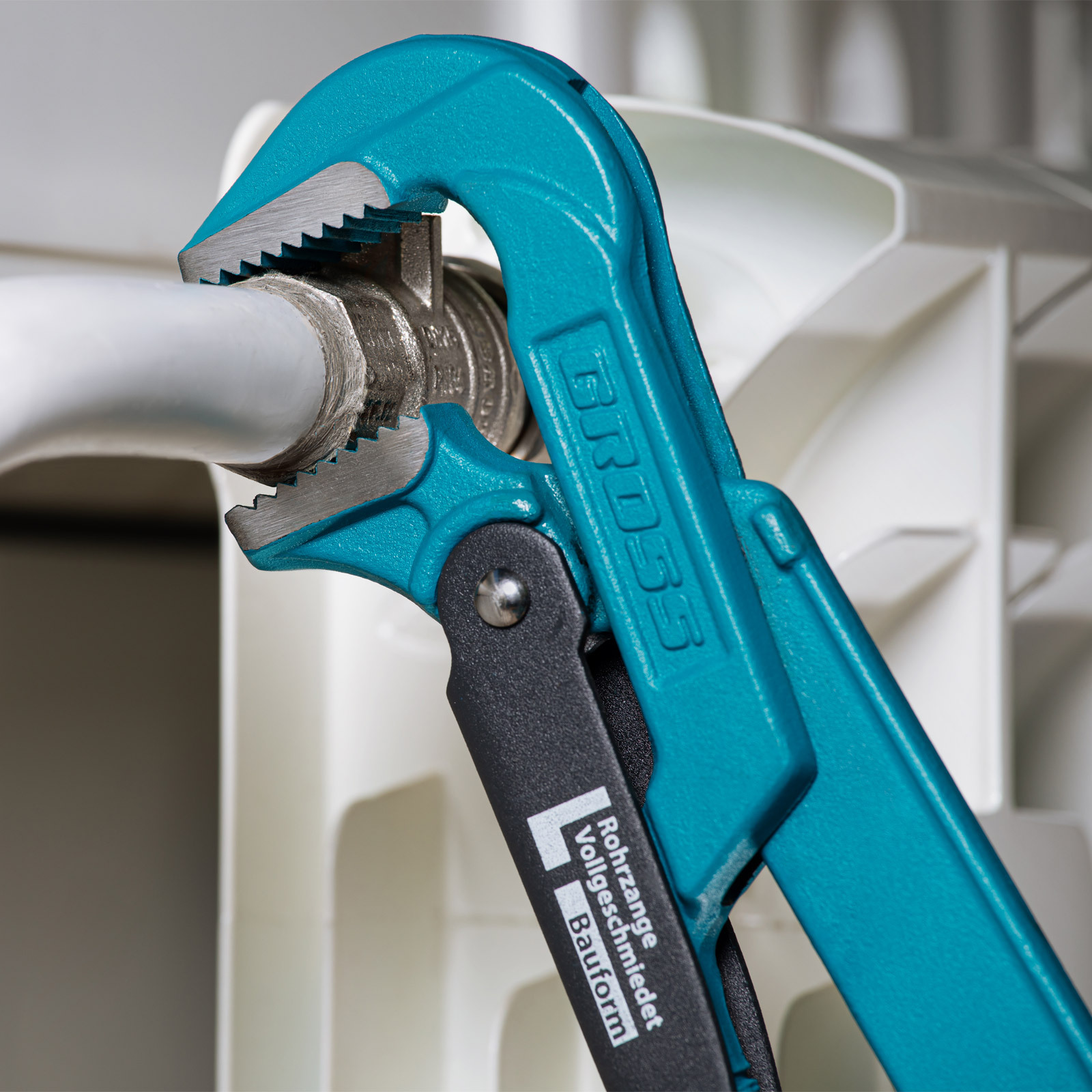 <p>Цельнокованый трубный рычажный ключ Gross №1 15601 из стали CrV, тип «L», используется для захвата и вращения труб, а также других деталей диаметром 1″ и плоских предметов. Рычажный механизм увеличивает усилие сжатия, экономя силы мастера. Ключ усиленной конструкции выдерживает интенсивные нагрузки и будет полезен автослесарю, работнику сферы ЖКХ, а также пригодится в быту.</p><h2>Преимущества</h2><ul><li>Прочность и долговечность — ключ изготовлен из хромованадиевой стали, губки закалены высокочастотными токами до твердости 57-60 HRC.</li><li>Надежная фиксация — на регулировочном механизме с гайкой имеется стопорное кольцо.</li><li>Самоблокируемый захват труб и деталей — зубья прогрессивной формы наклонены против направления вращения.</li><li>Антикоррозийная защита — порошковое покрытие защищает инструмент от воздействия влаги.</li></ul>
