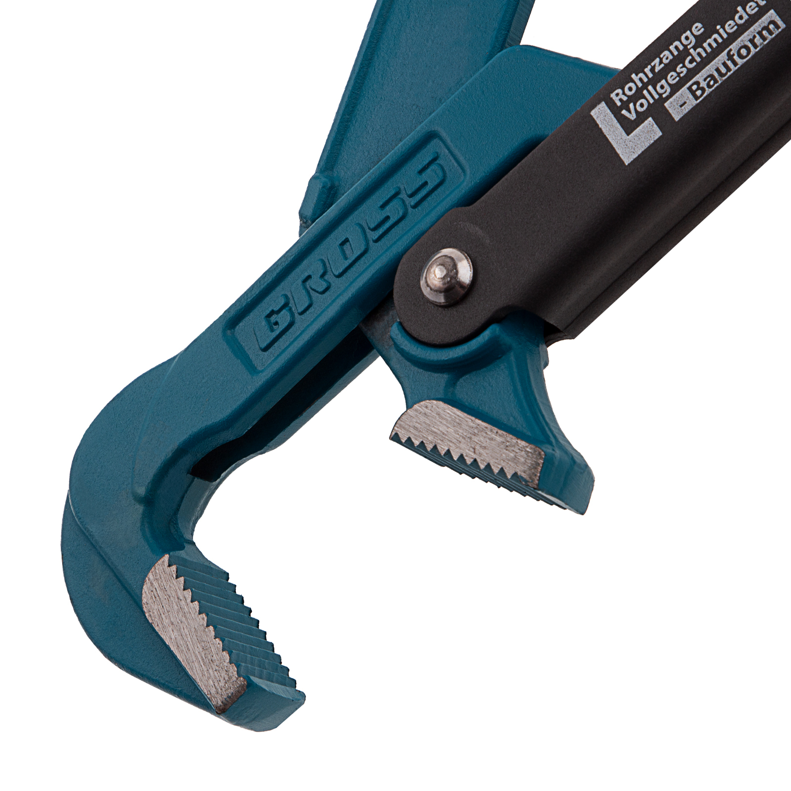 - Самоблокируемый захват труб и деталей — зубья прогрессивной формы наклонены против направления вращения.