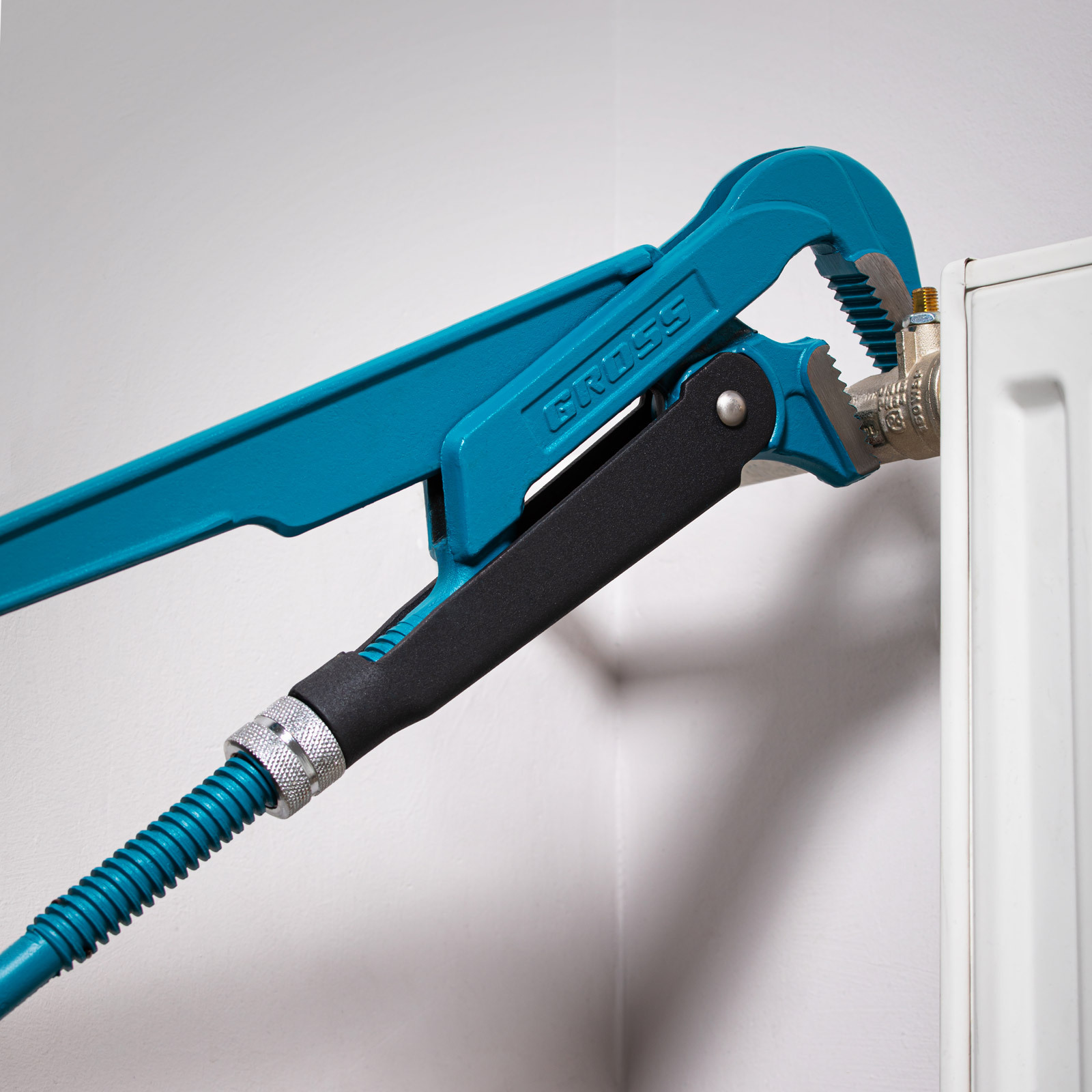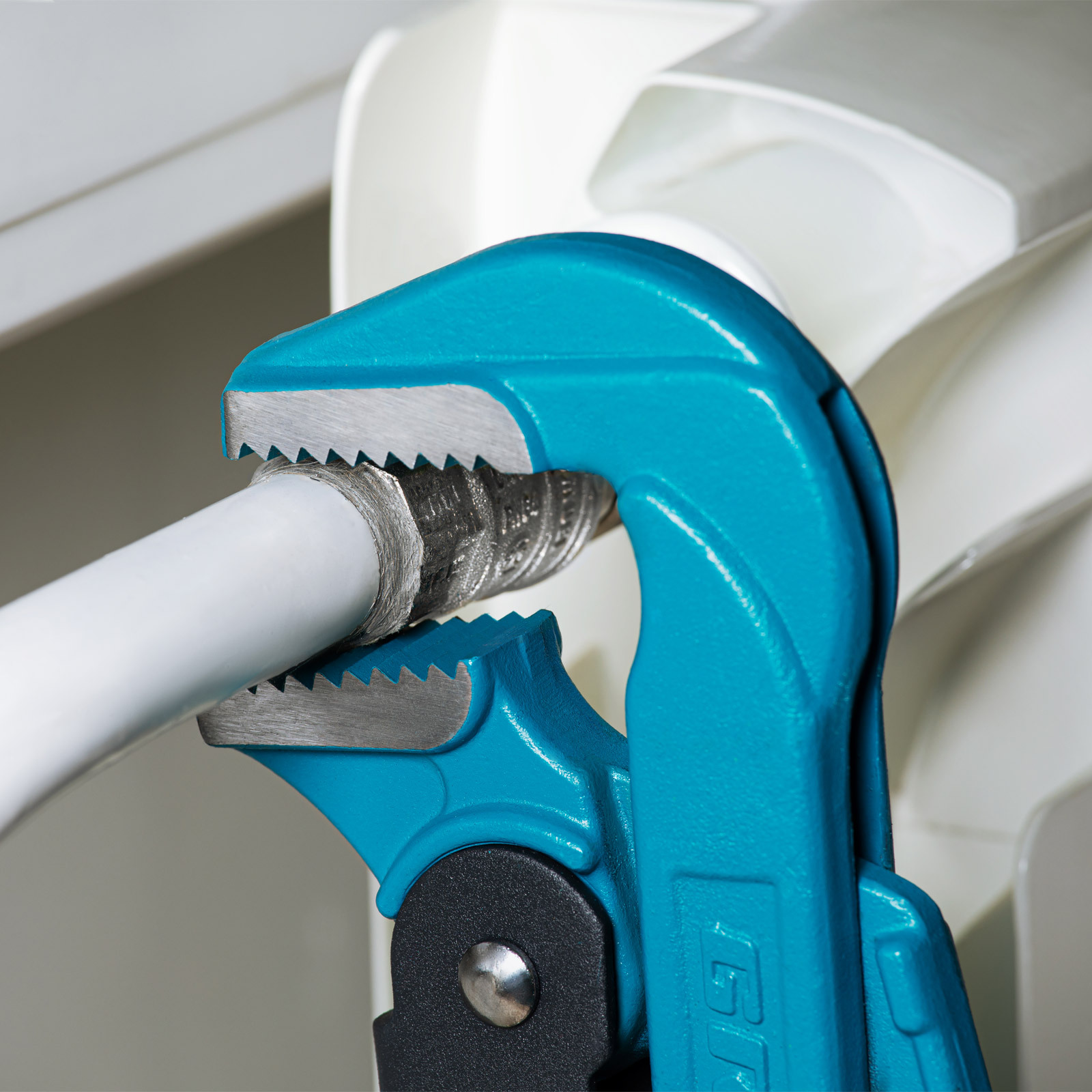 - Самоблокируемый захват труб и деталей — зубья прогрессивной формы наклонены против направления вращения.