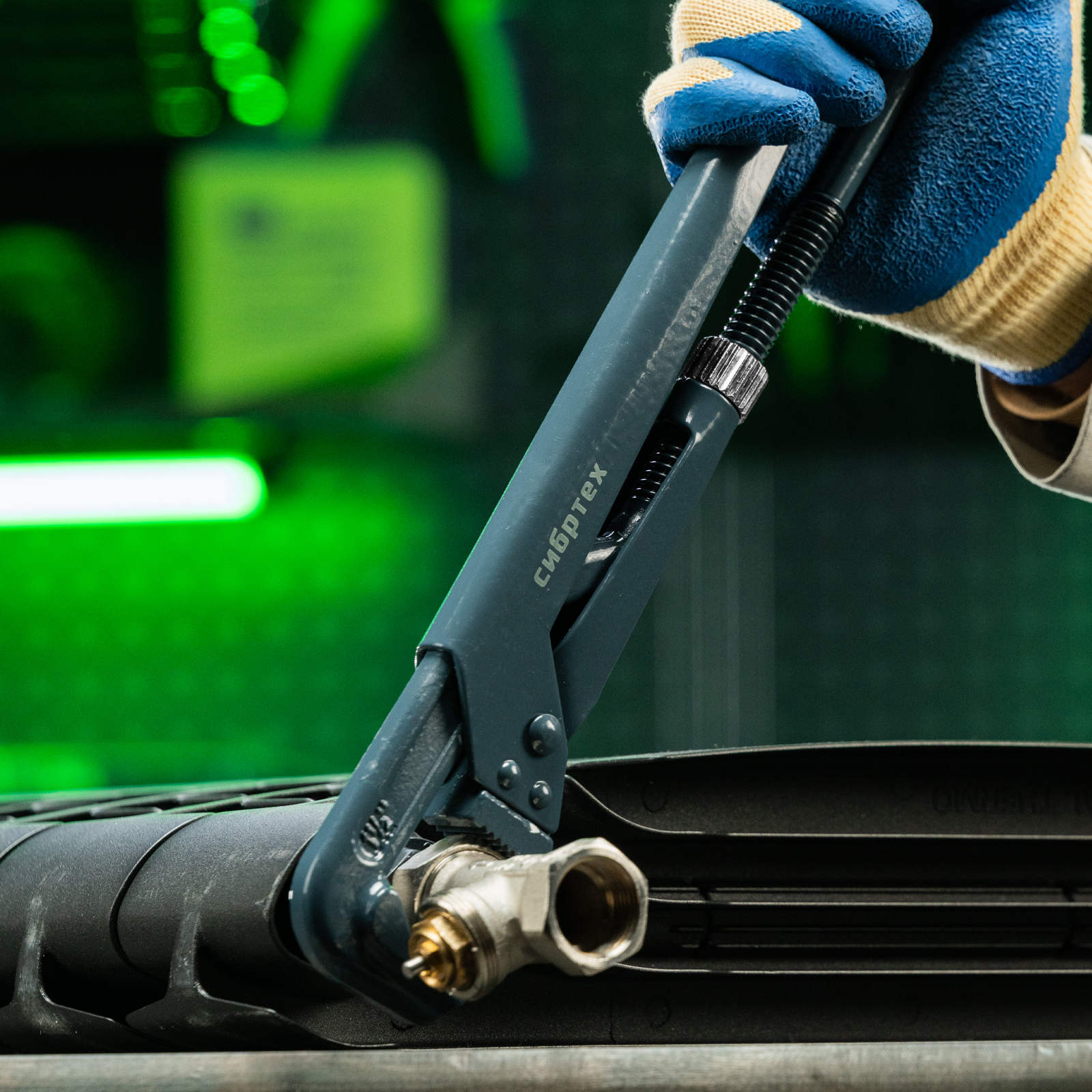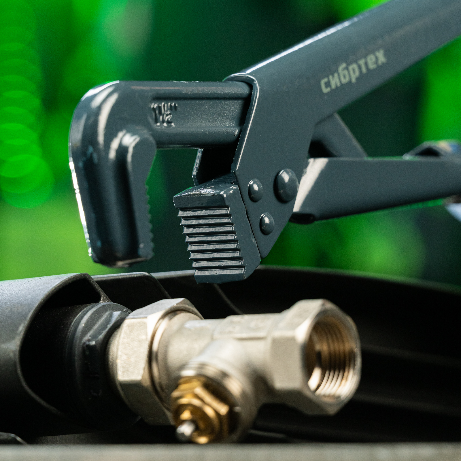 <p>Кованый трубный рычажный ключ Сибртех №2 15771, тип «L», используется для захвата и вращения труб диаметром 1.5", а также других деталей со специальным профилем и без него. Рычажный механизм увеличивает рабочее усилие, снижая нагрузку на руки мастера. Инструмент рассчитан на бытовое и профессиональное применение.</p><h2>Преимущества</h2><ul><li>Прочность и долговечность — кованая конструкция из закаленной легированной стали обеспечивает высокий рабочий ресурс, губки закалены до твердости 48-52 HRC.</li><li>Надежная фиксация — на регулировочном механизме с гайкой имеется стопорное кольцо.</li><li>Надежный захват — зубья прогрессивной формы наклонены против направления вращения.</li><li>Защита от коррозии — на инструмент нанесено эмалированное покрытие.</li></ul>