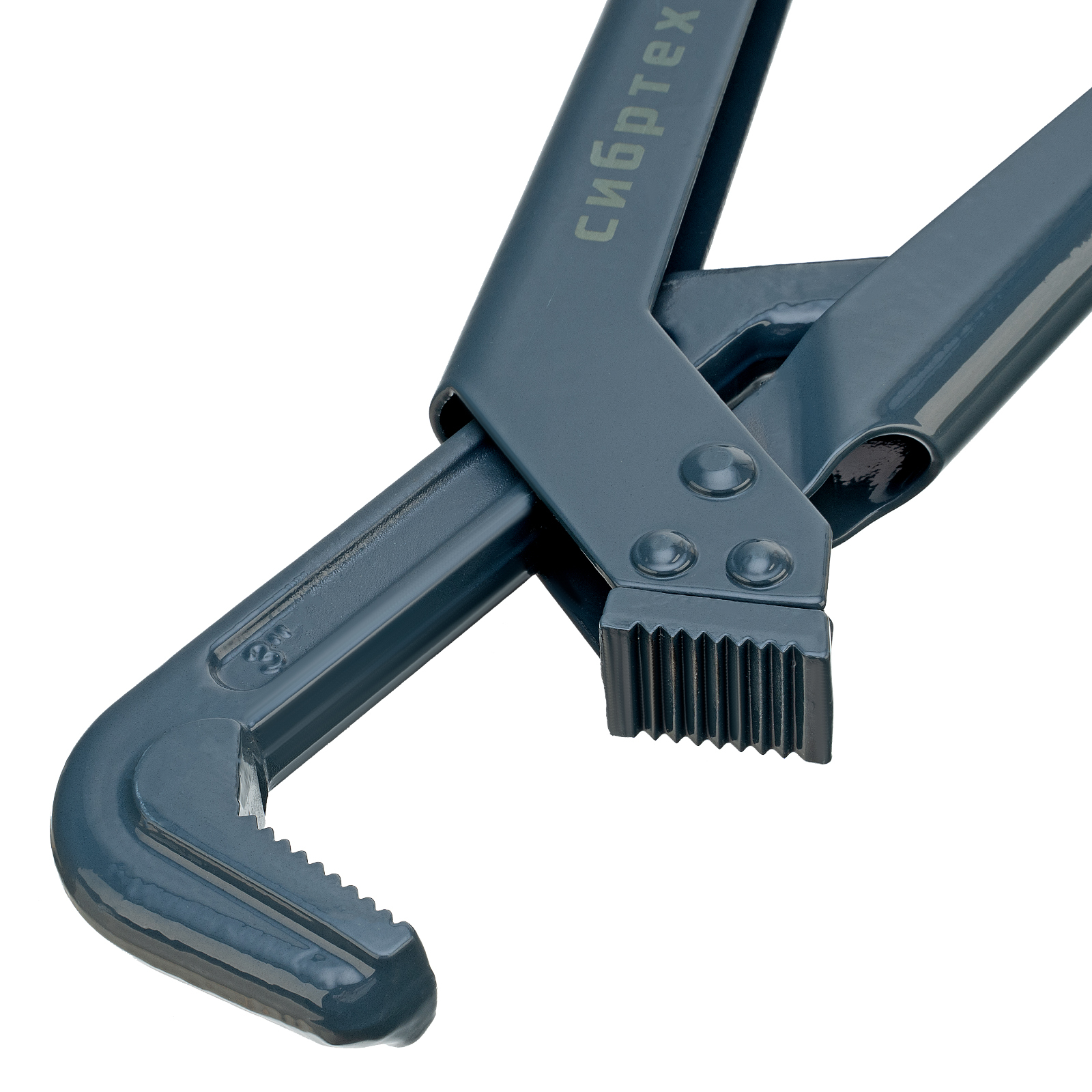 <p>Кованый трубный рычажный ключ Сибртех №4 15773, тип «L», используется для захвата и вращения труб диаметром 3", а также других деталей со специальным профилем и без него. Рычажный механизм увеличивает рабочее усилие, снижая нагрузку на руки мастера. Инструмент рассчитан на бытовое и профессиональное применение.</p><h2>Преимущества</h2><ul><li>Прочность и долговечность — кованая конструкция из закаленной легированной стали обеспечивает высокий рабочий ресурс, губки закалены до твердости 48-52 HRC.</li><li>Надежная фиксация — на регулировочном механизме с гайкой имеется стопорное кольцо.</li><li>Надежный захват — зубья прогрессивной формы наклонены против направления вращения.</li><li>Защита от коррозии — на инструмент нанесено эмалированное покрытие.</li></ul>
