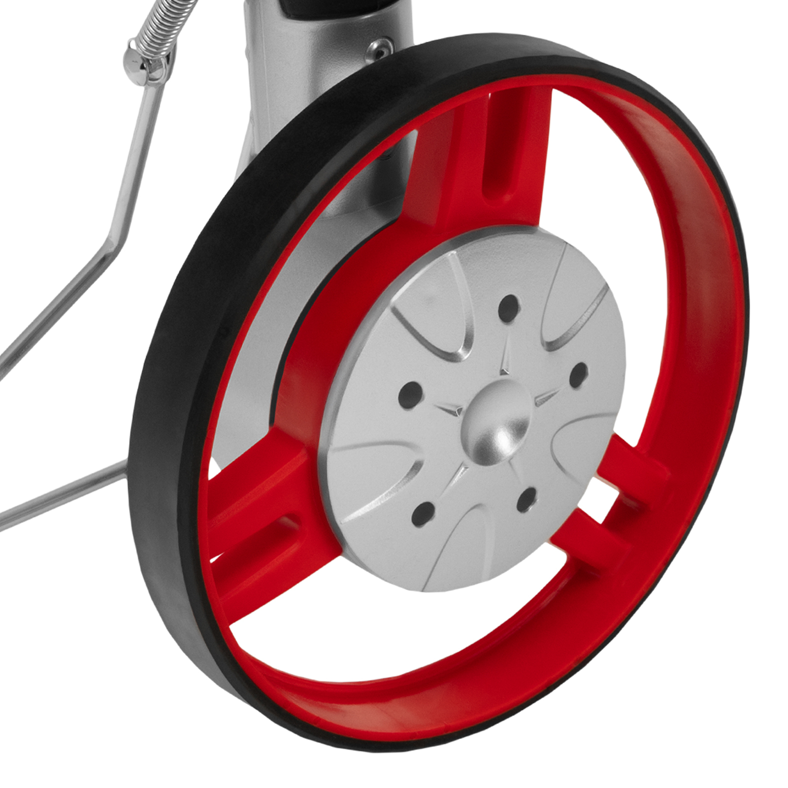 Колесо измерительное электронное Matrix 36002 используется для замера расстояний на местности и особенно удобно на участках со сложным рельефом, где невозможно использование рулетки или дальномера. Трехсекционная телескопическая ручка раздвигается с 560 до 1100 мм, что позволяет подобрать длину под любой рост оператора. Показания удобно считывать — они выводятся на ЖК-дисплей, установленный на рукоятке. Мерное колесо, или курвиметр, применяют при инвентаризации сельскохозяйственных земель, строительстве автомобильных и железнодорожных работ, для обмера строений или дачных участков.