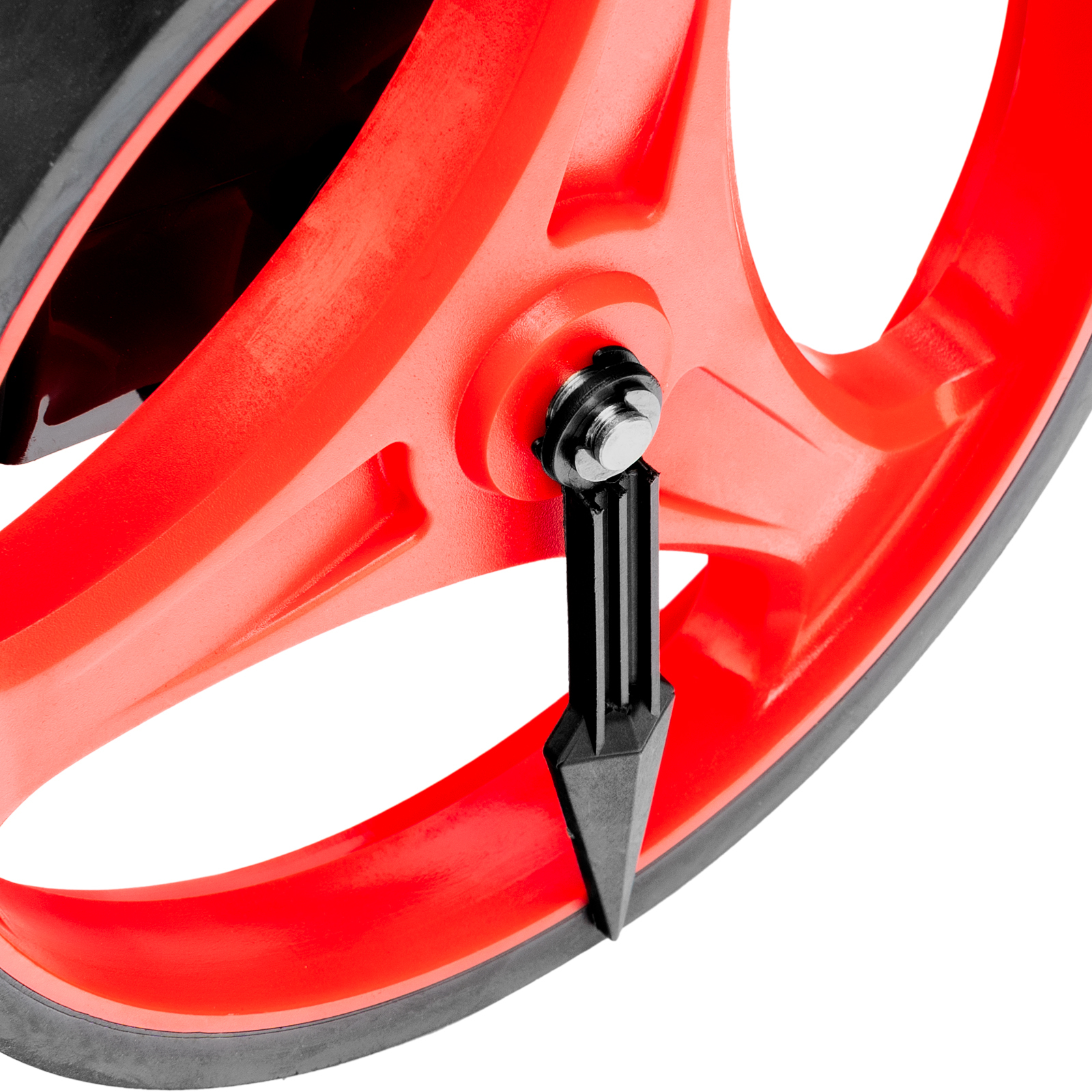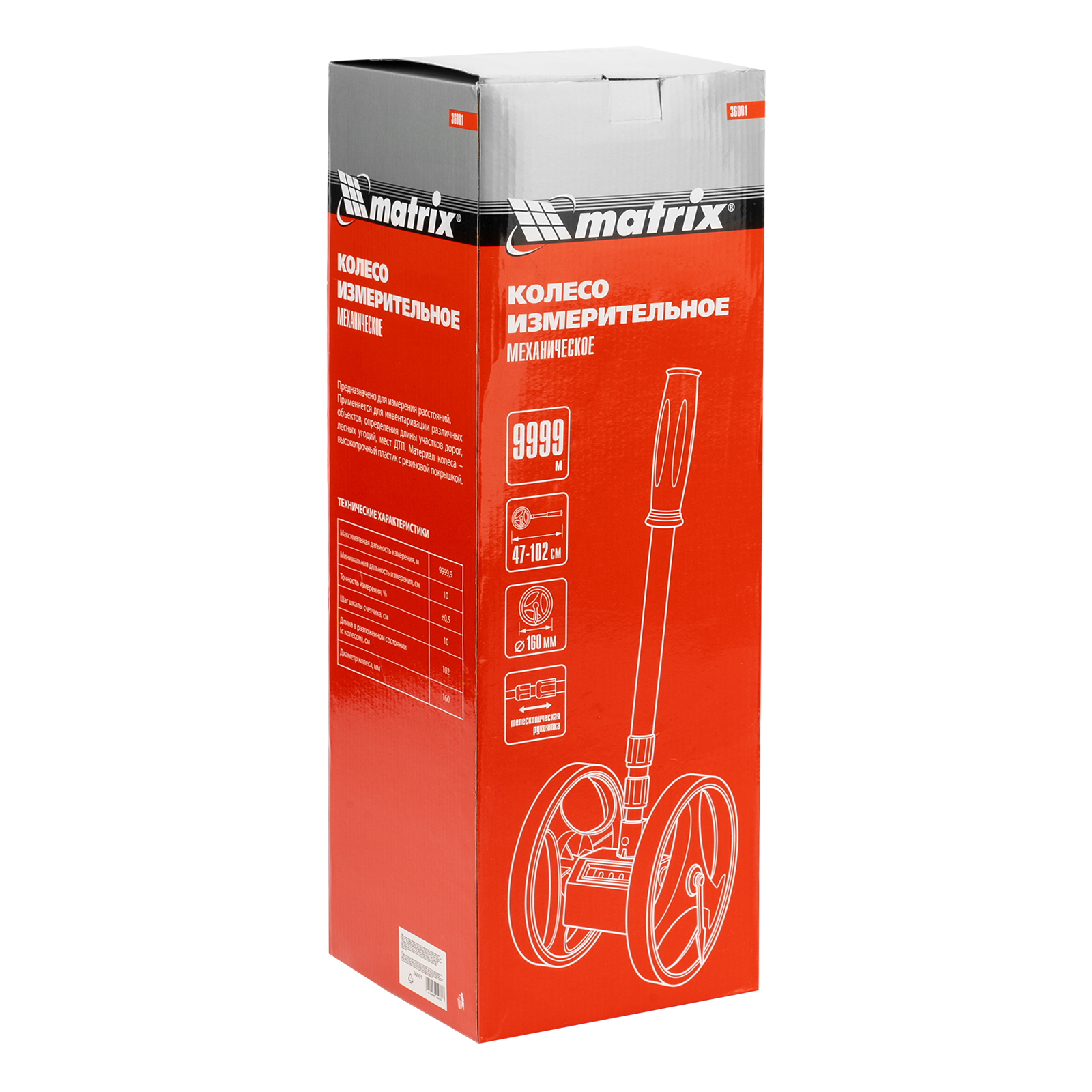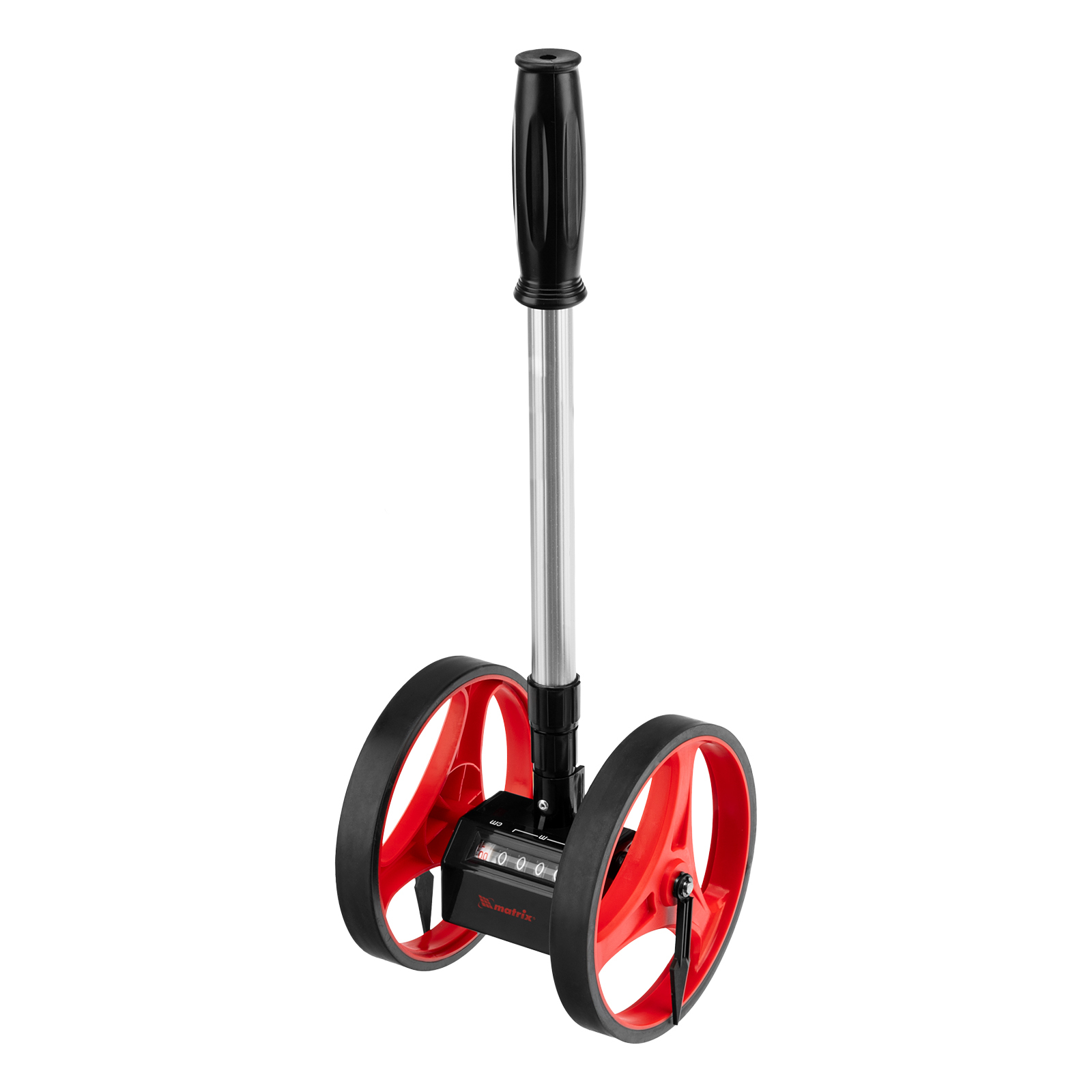 Измерительное механическое колесо (или курвиметр) Matrix 36001 предназначено для замера расстояний на местности. Снабжено удобным механическим счетчиком и кнопкой быстрого сброса показаний. Трехсекционная телескопическая рукоятка раздвигается до 925 мм, при этом общая высота инструмента составляет 1018 мм, поэтому колесо подходит пользователю любого роста. Прибор необходим при проведении дорожных и парковых работ, а также для обмера земельных участков и строящихся объектов, мест ДТП.