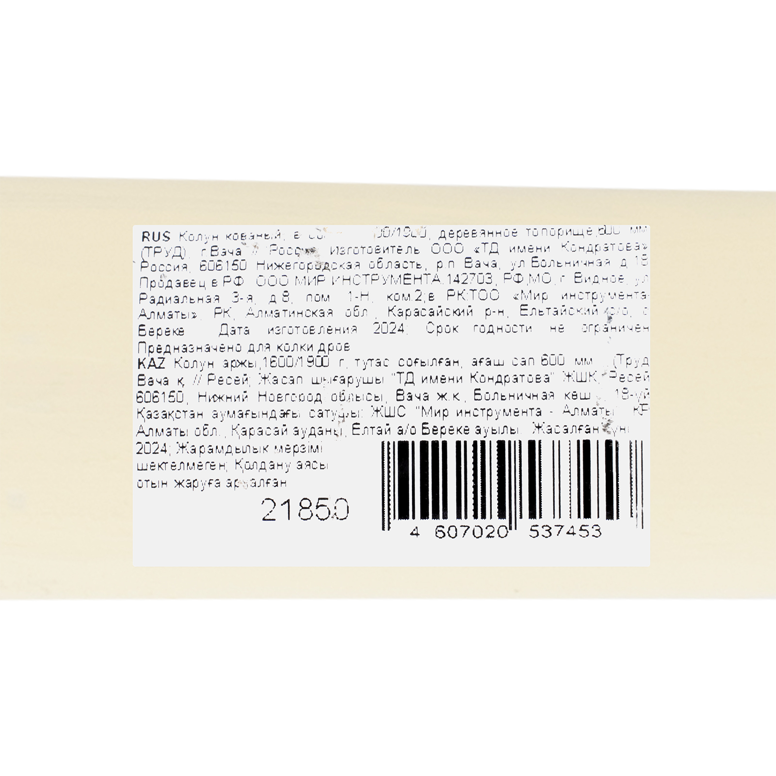 Колун кованый, в сборе, 1700/2100 г, деревянное топорище, 600 мм