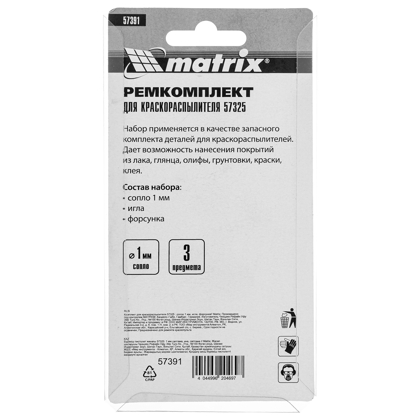 Комплект для краскораспылителя 57325 : сопло 1 мм, игла, форсунка Matrix
