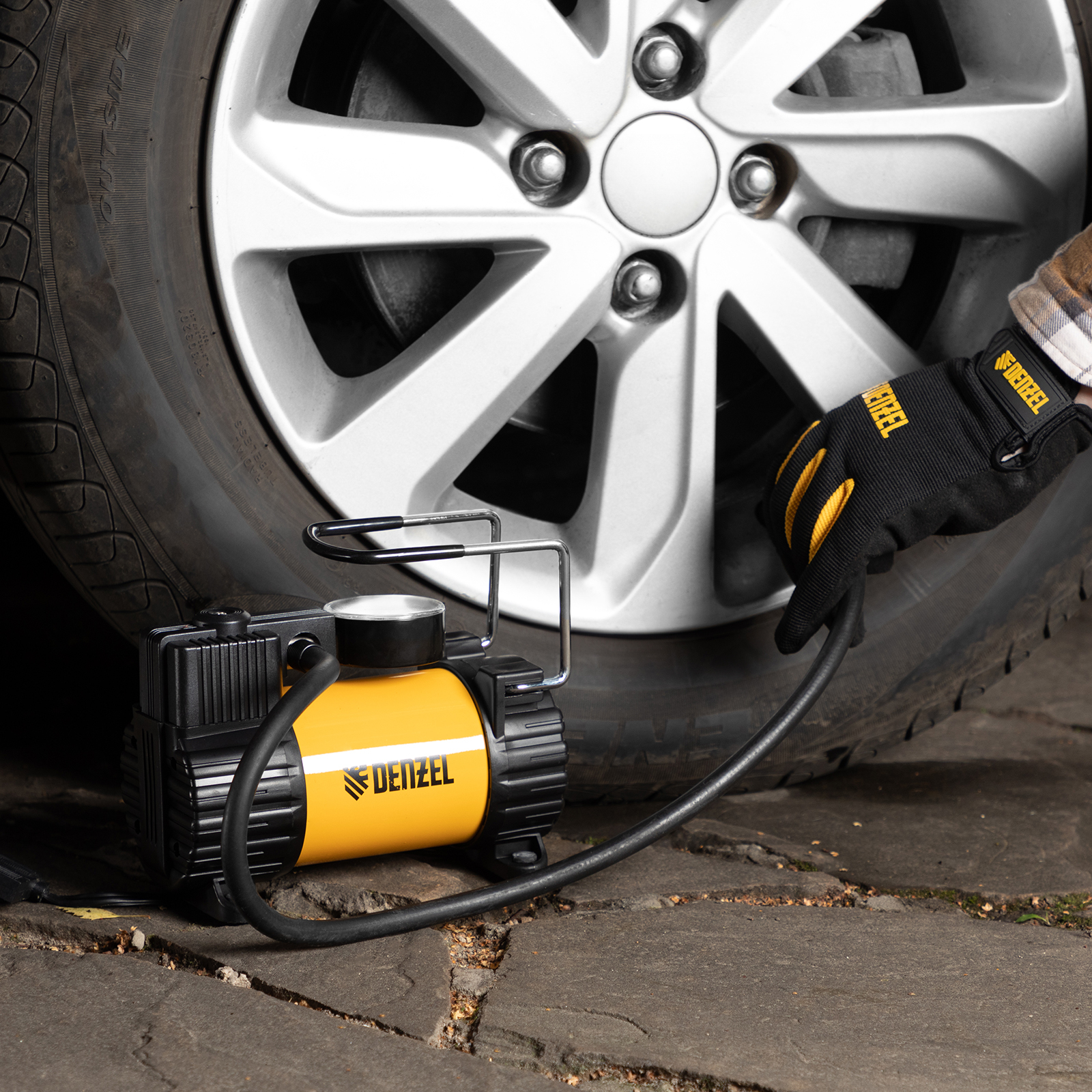 Компрессор автомобильный AC-37, 12 В, 7 атм, 37 л/мин, автомобильный предохранитель Denzel