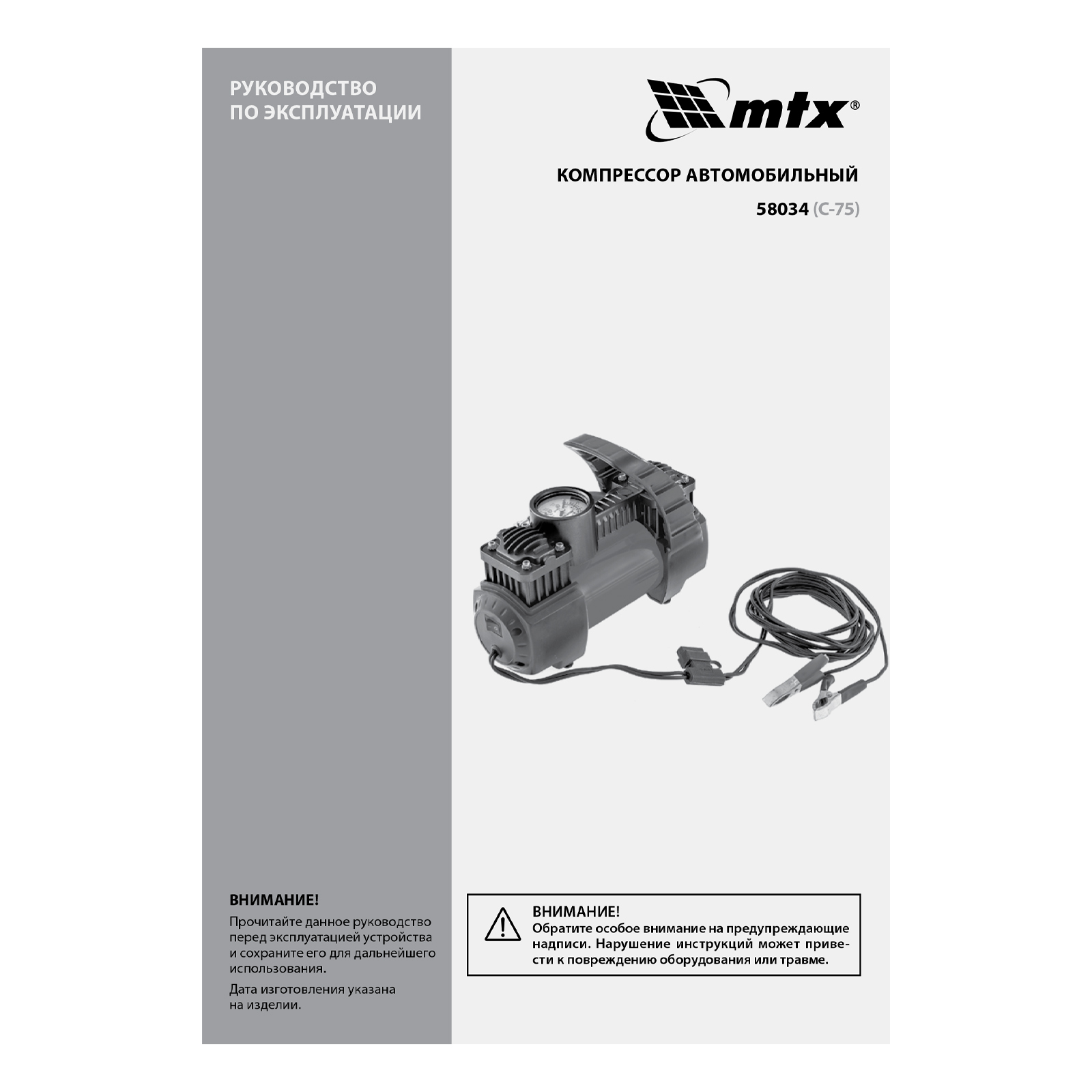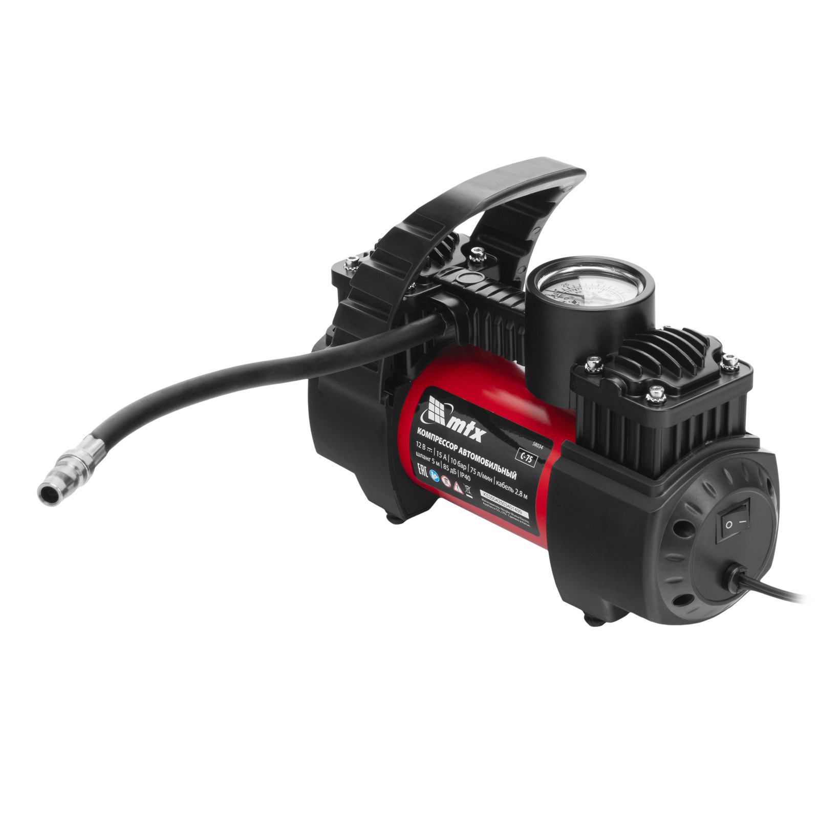 Компрессор автомобильный C-75, 12 В, 10 атм., 75 л/мин MTX