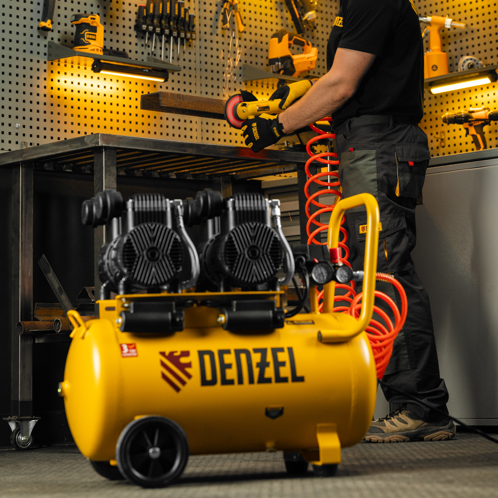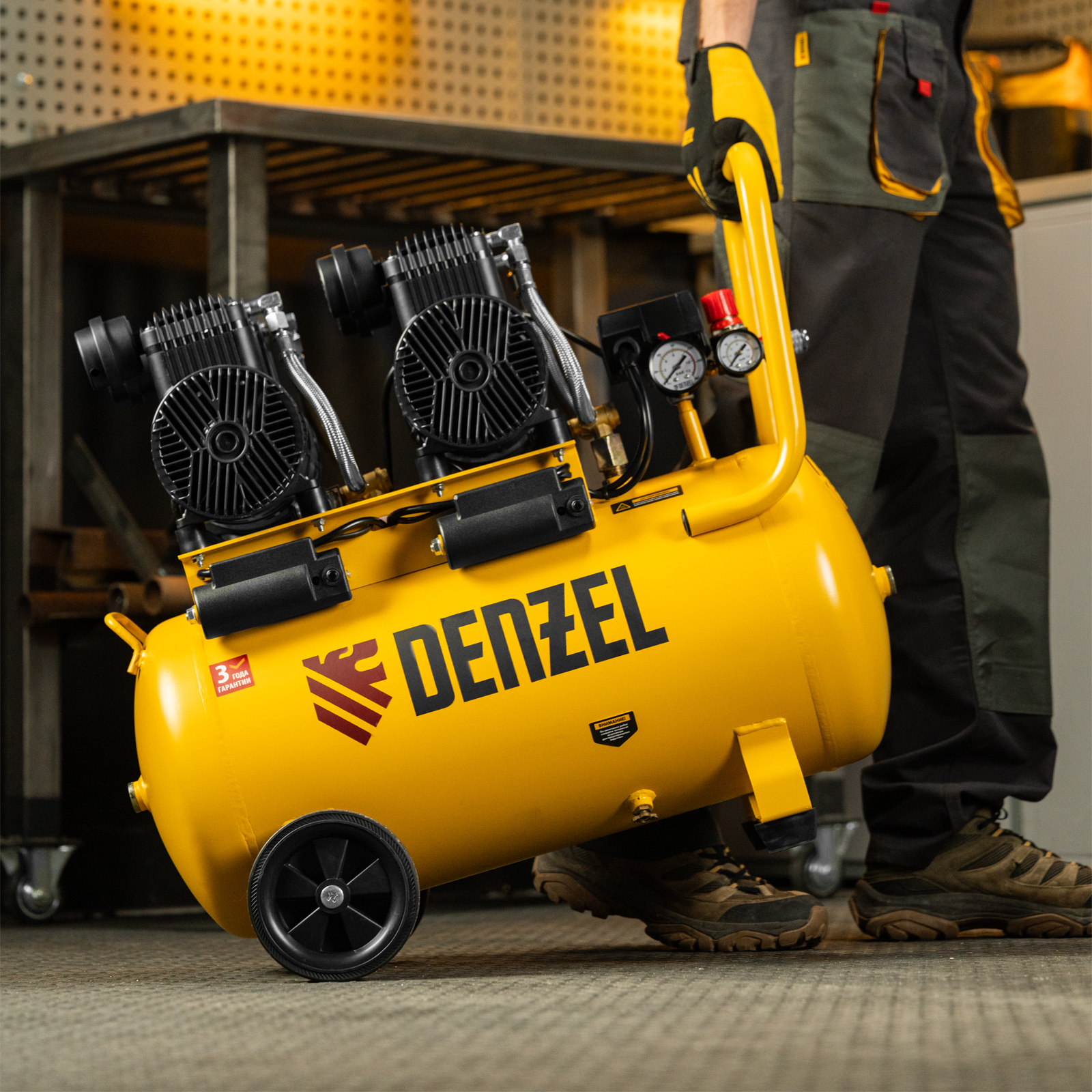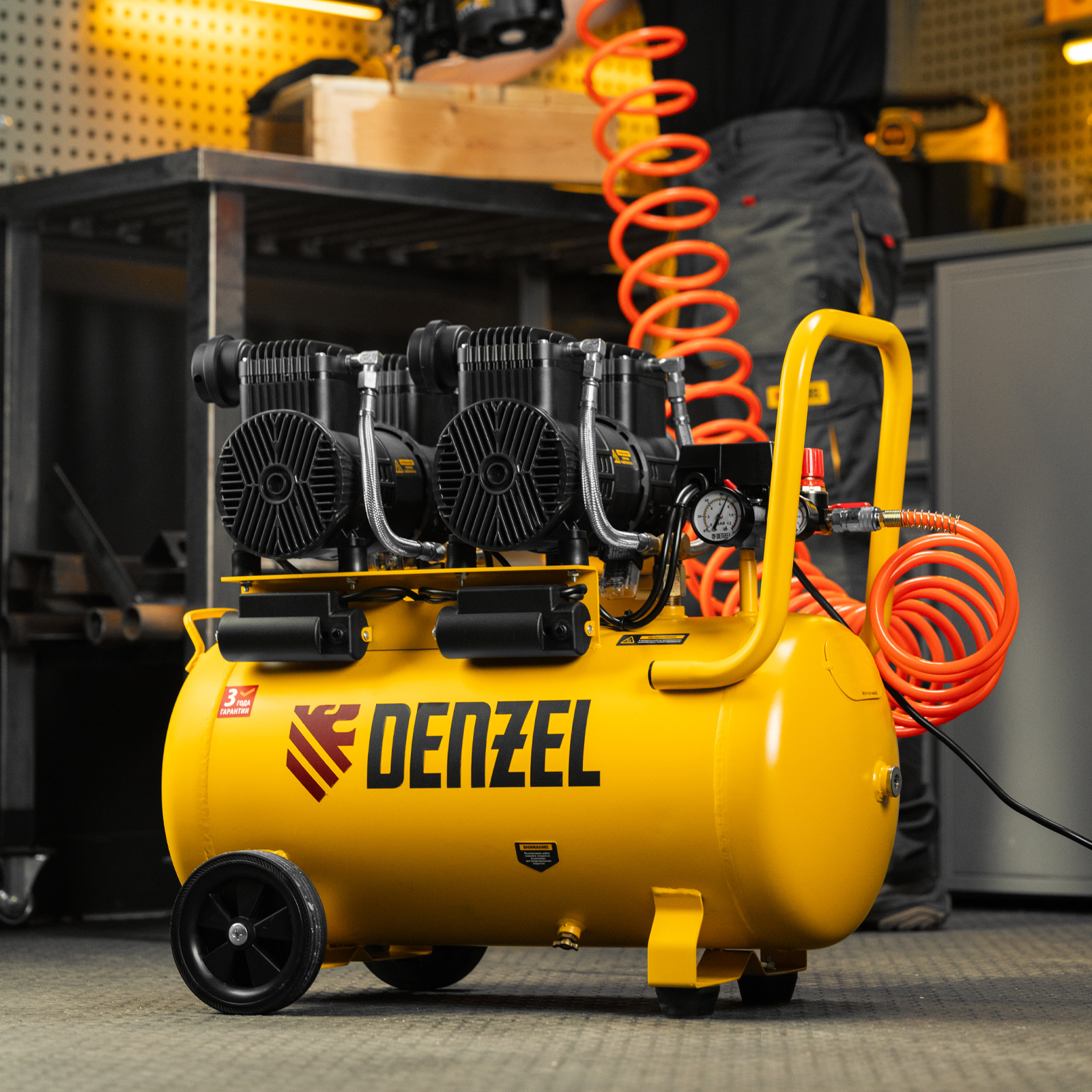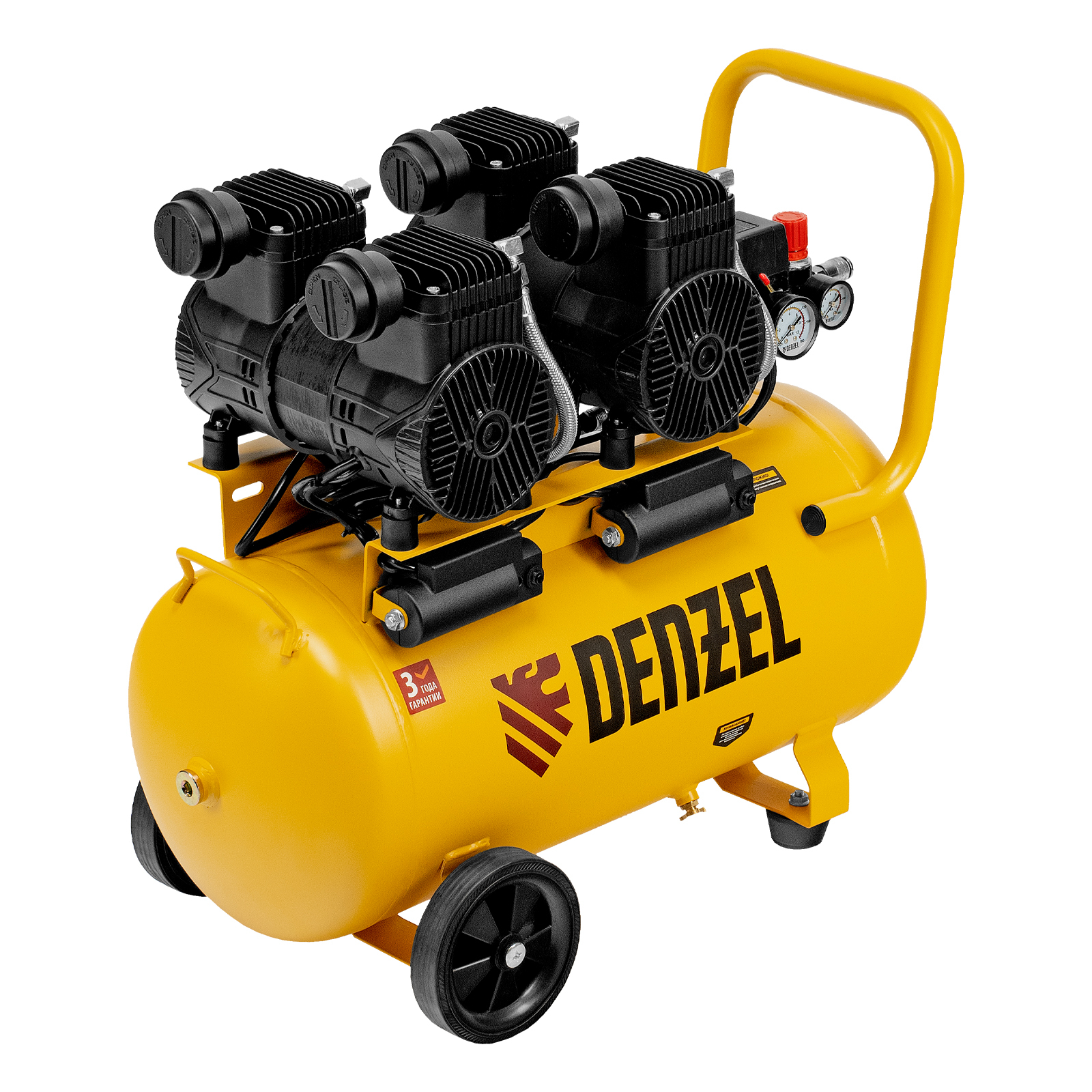 Компрессор безмасл. малошумный DLP -3000/50, 3 кВт, 2х1,5 кВт,50 л, 2850 об/мин,500 л/мин Denzel